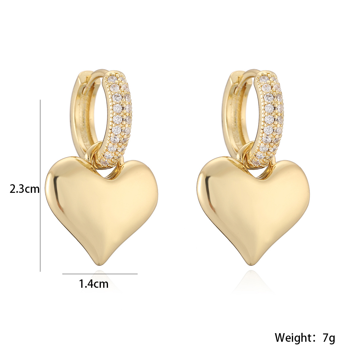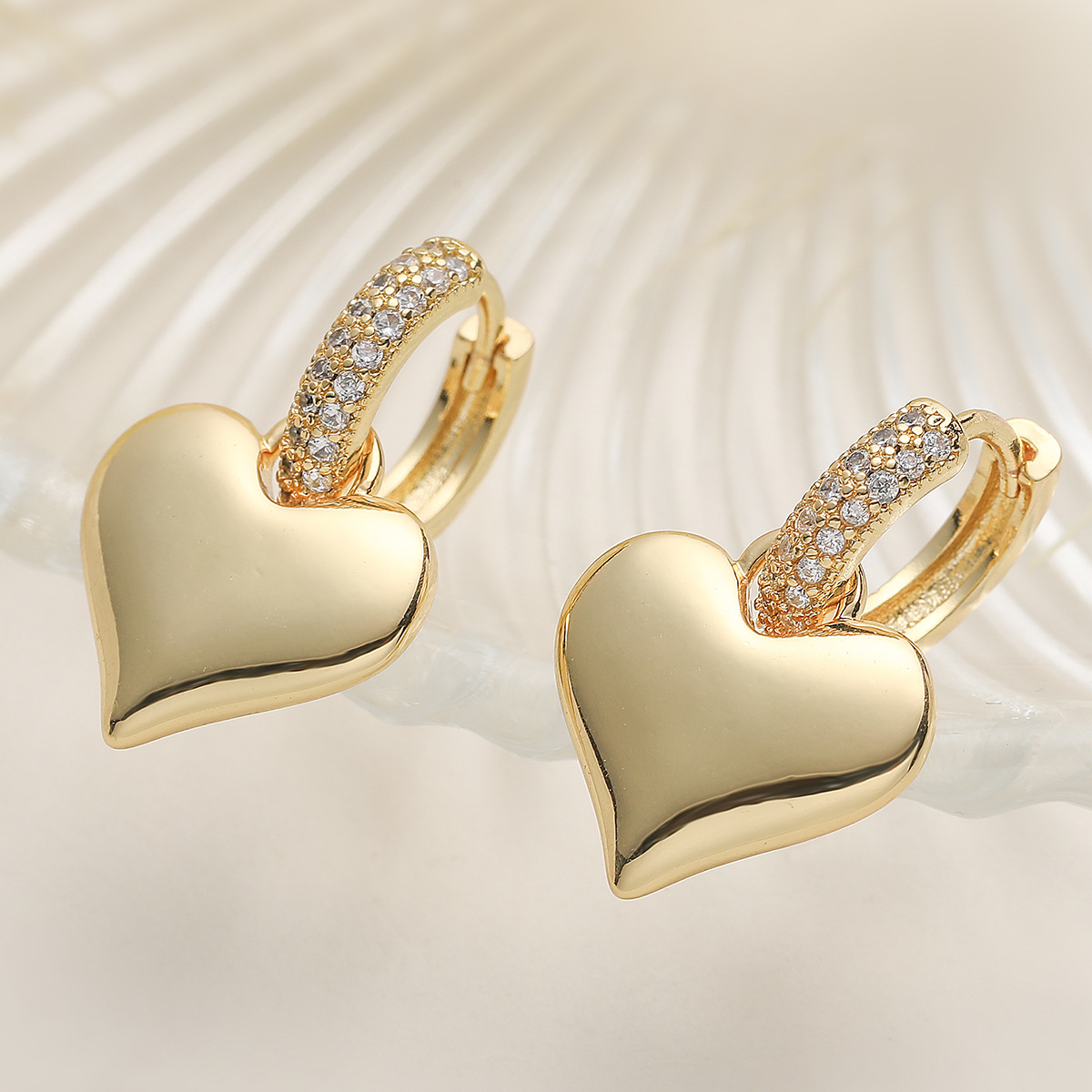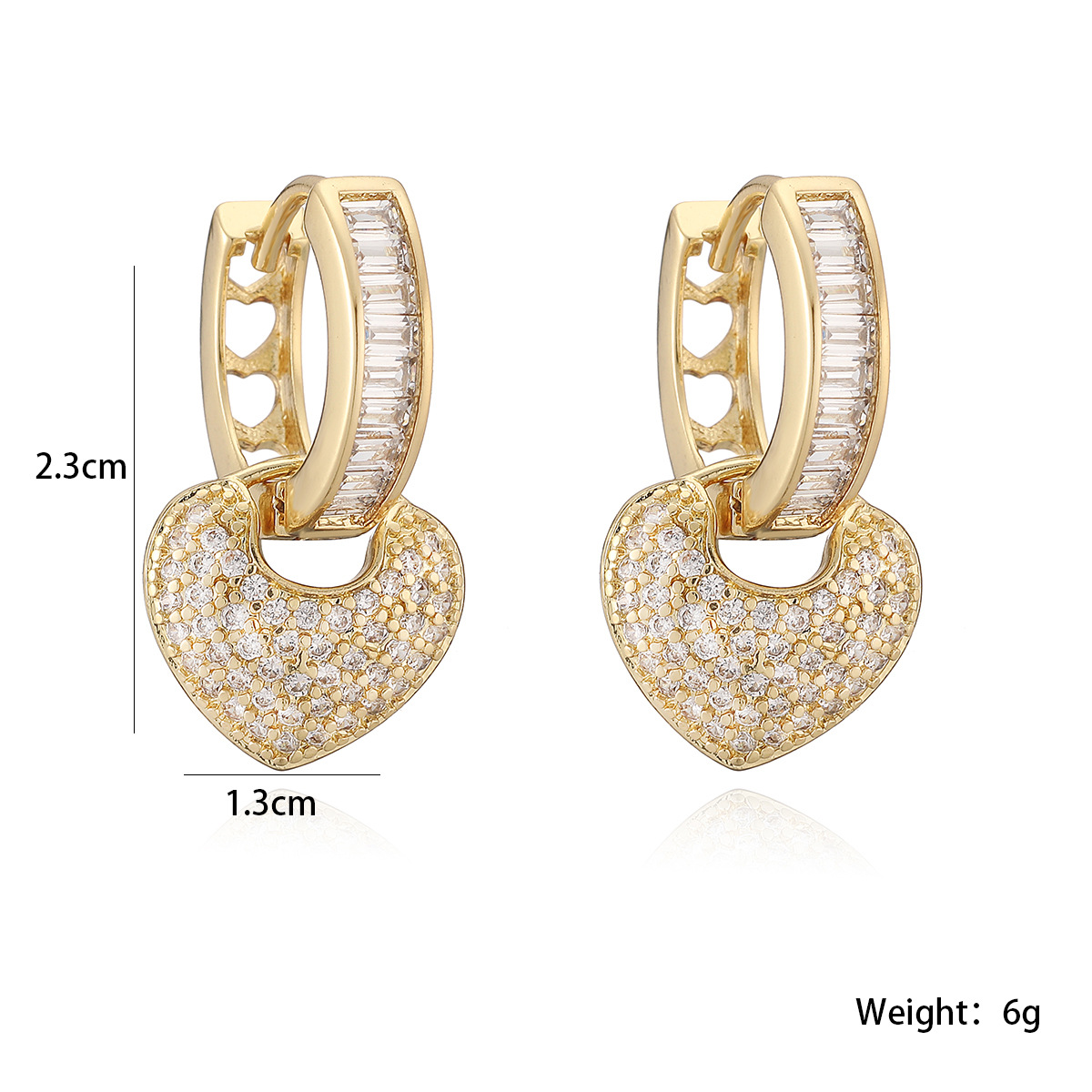 Boucles d'oreilles en laiton zircon cubique pavent, coeur, Plaqué d'or, styles différents pour le choix & pavé de micro zircon & pour femme, Vendu par paire
