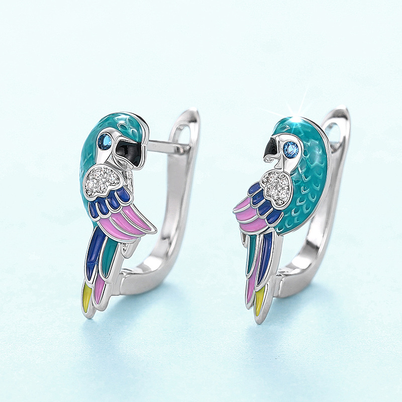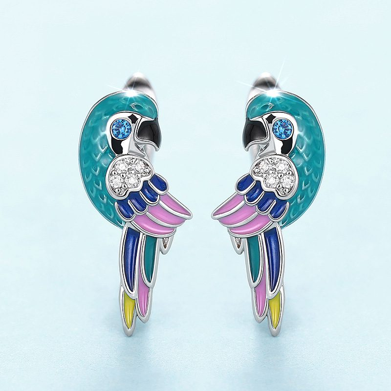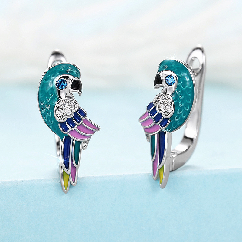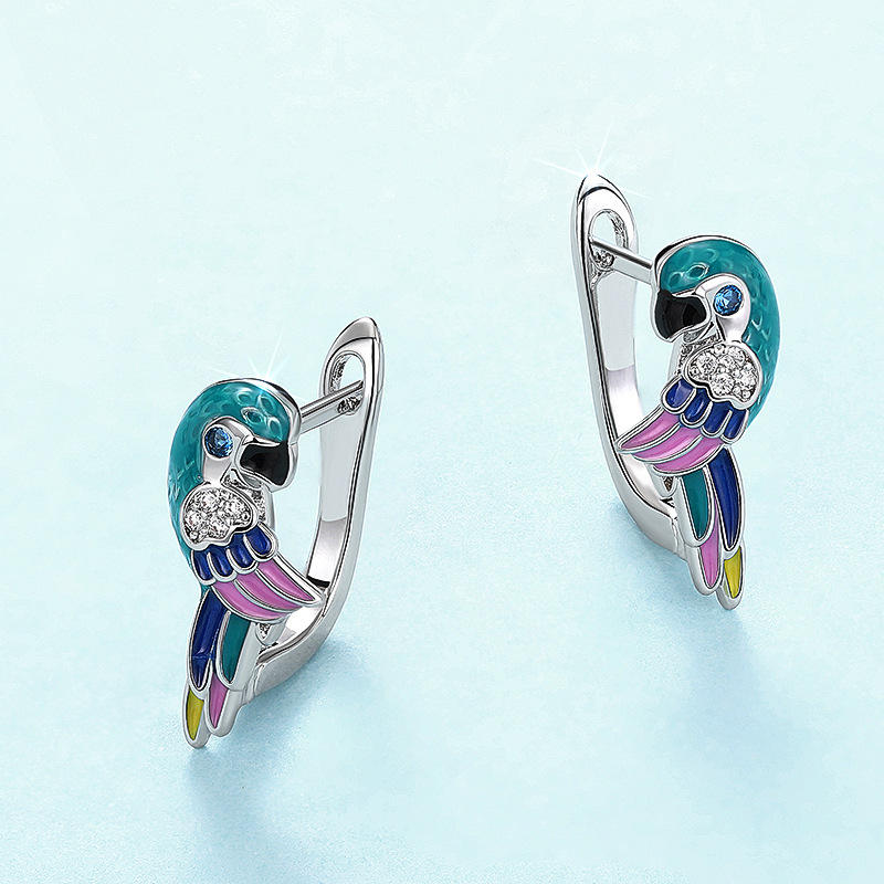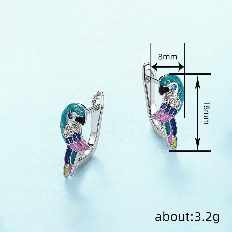 Boucles d'oreilles en laiton zircon cubique pavent, perroquetperruche, Placage, pavé de micro zircon & pour femme & émail, Vendu par paire