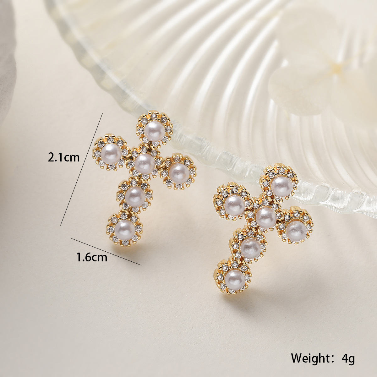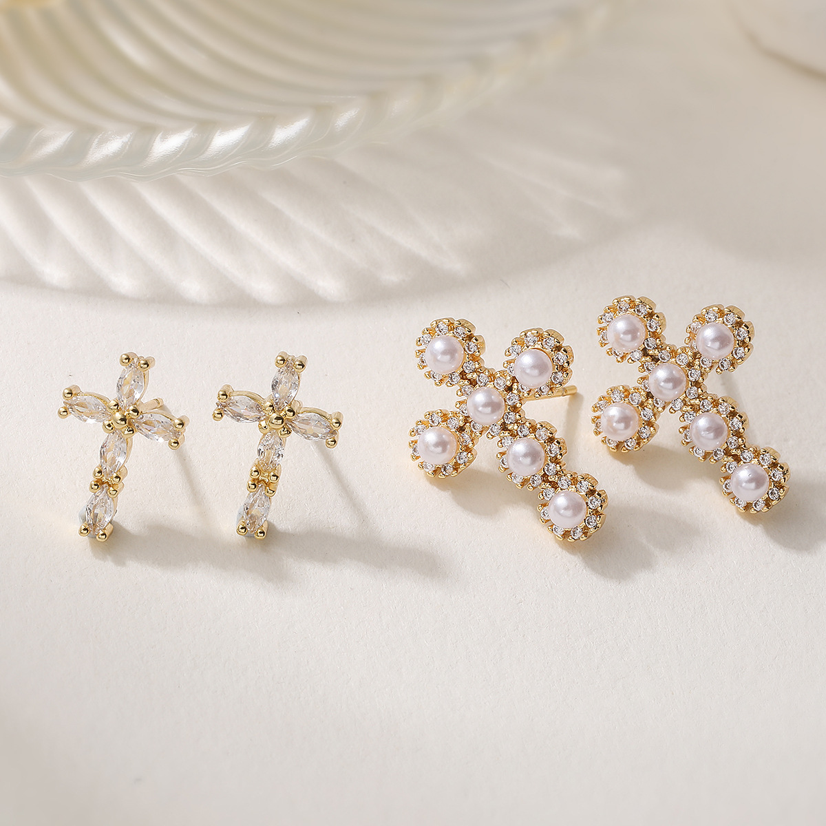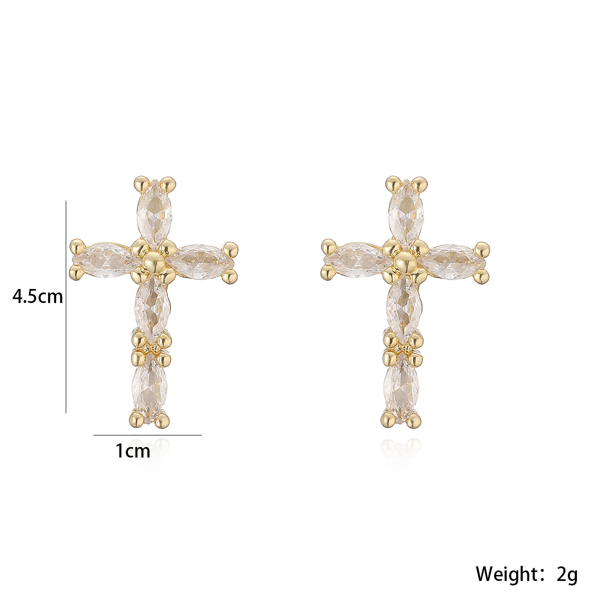 Boucles d'oreilles en laiton zircon cubique pavent, croix, Plaqué or 18K, styles différents pour le choix & pavé de micro zircon & pour femme, Vendu par paire