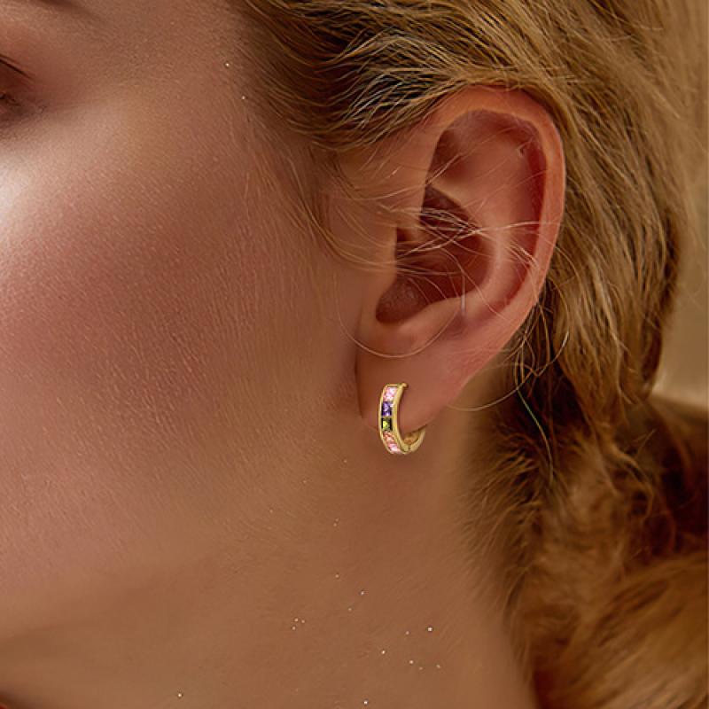 Boucles d'oreilles en laiton zircon cubique pavent, Placage, trois pièces & pour femme, doré, Vendu par fixé