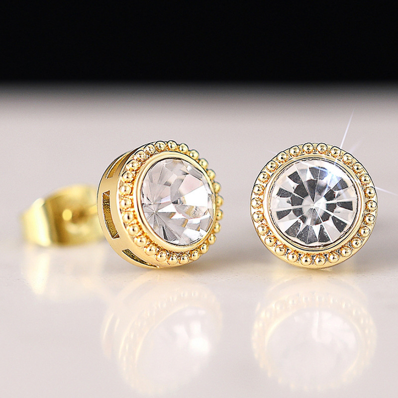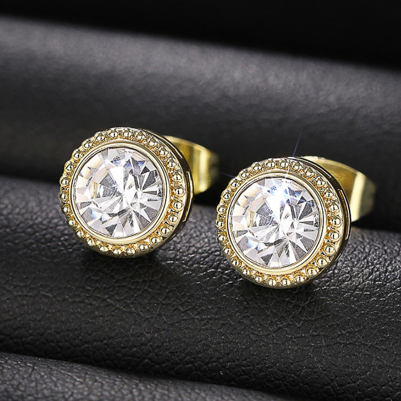 Boucles d'oreilles en laiton zircon cubique pavent, Rond, Placage, bijoux de mode & pavé de micro zircon & pour femme, Vendu par paire