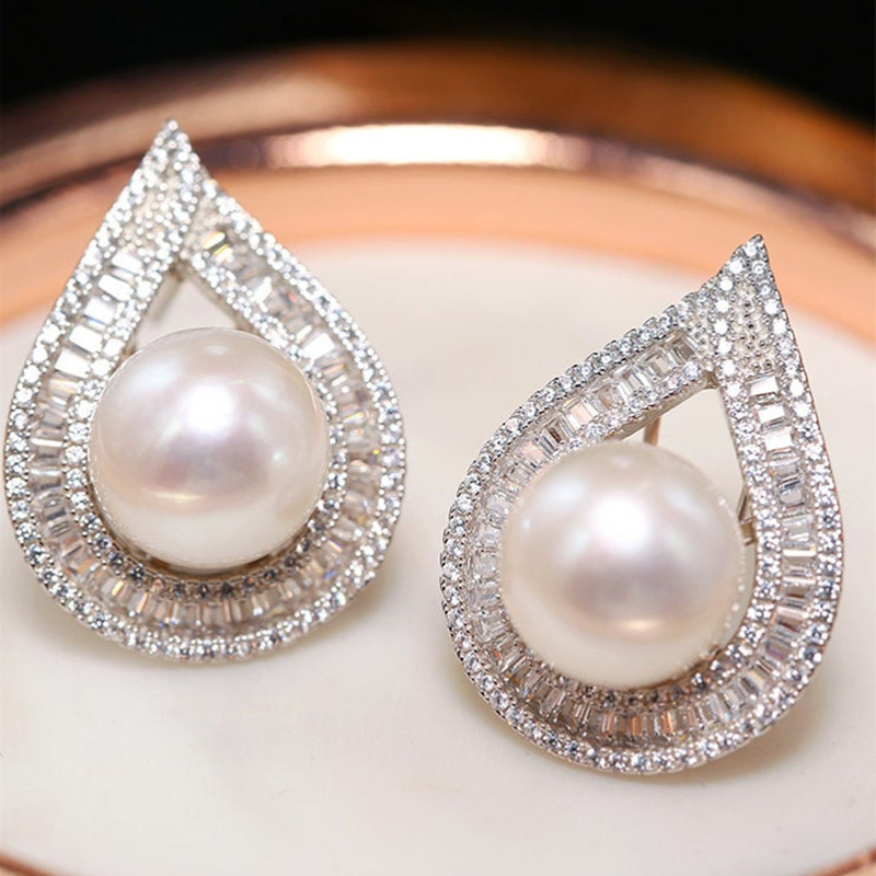 Boucles d'oreilles en laiton zircon cubique pavent, avec perle de plastique, larme, Placage, pavé de micro zircon & pour femme & creux, Vendu par paire