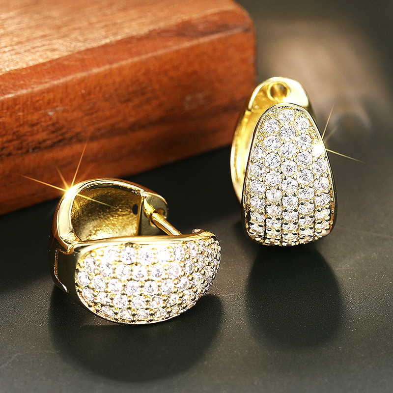 Boucles d'oreilles en laiton zircon cubique pavent, Placage, trois pièces & pour femme, doré, Vendu par fixé