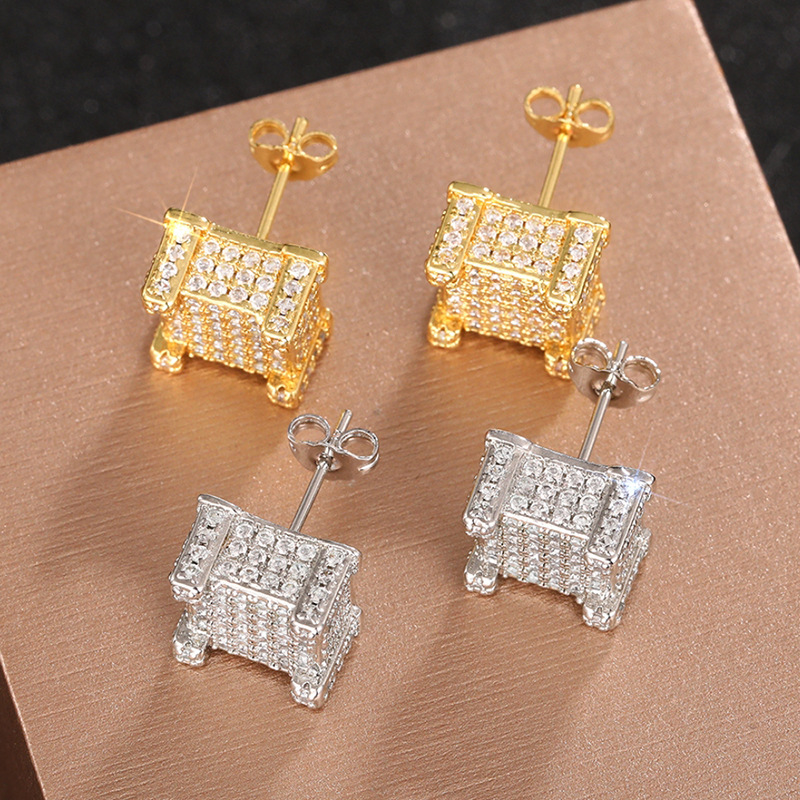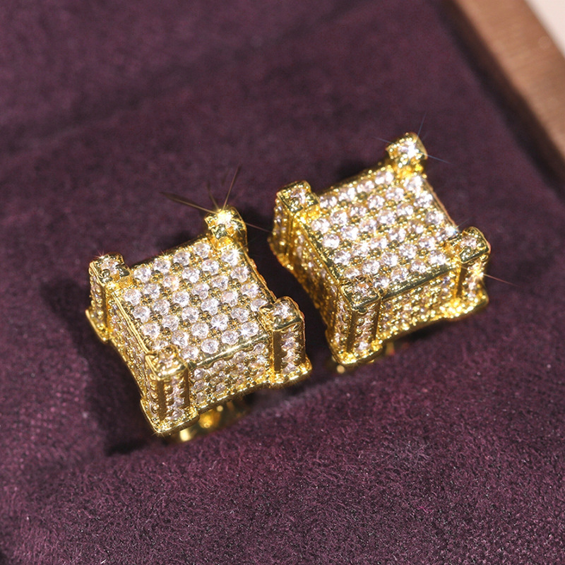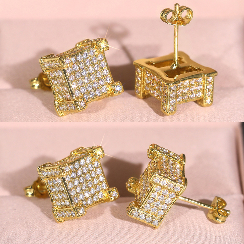 Boucles d'oreilles en laiton zircon cubique pavent, Placage, trois pièces & pour femme, doré, Vendu par fixé