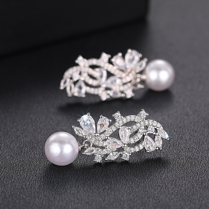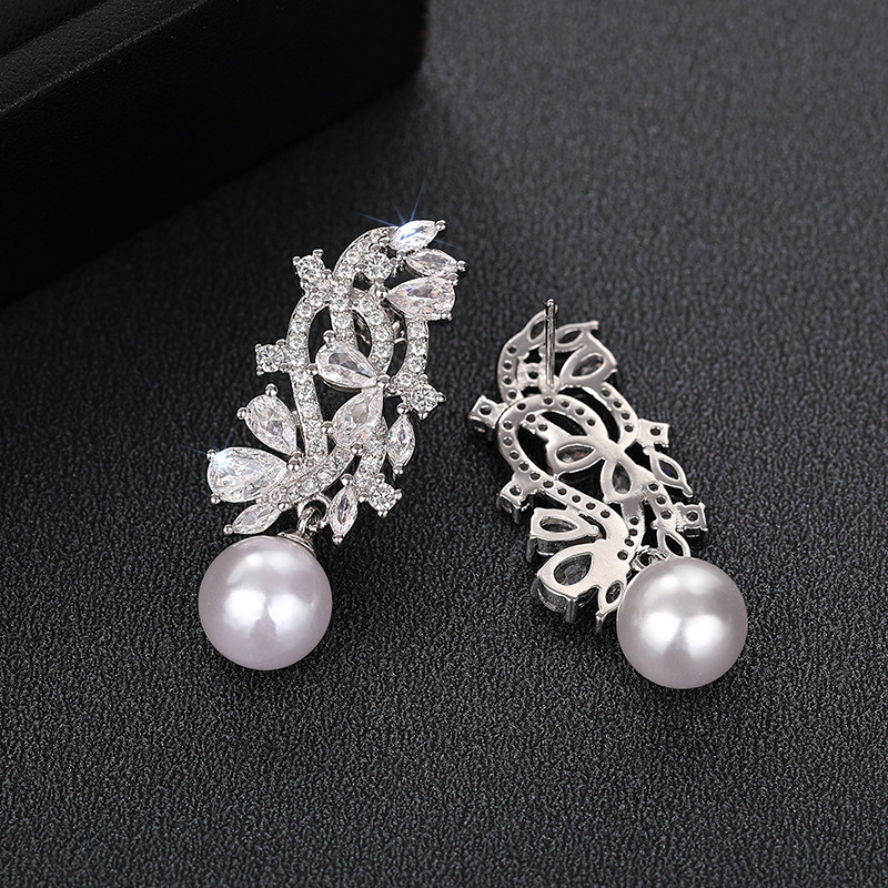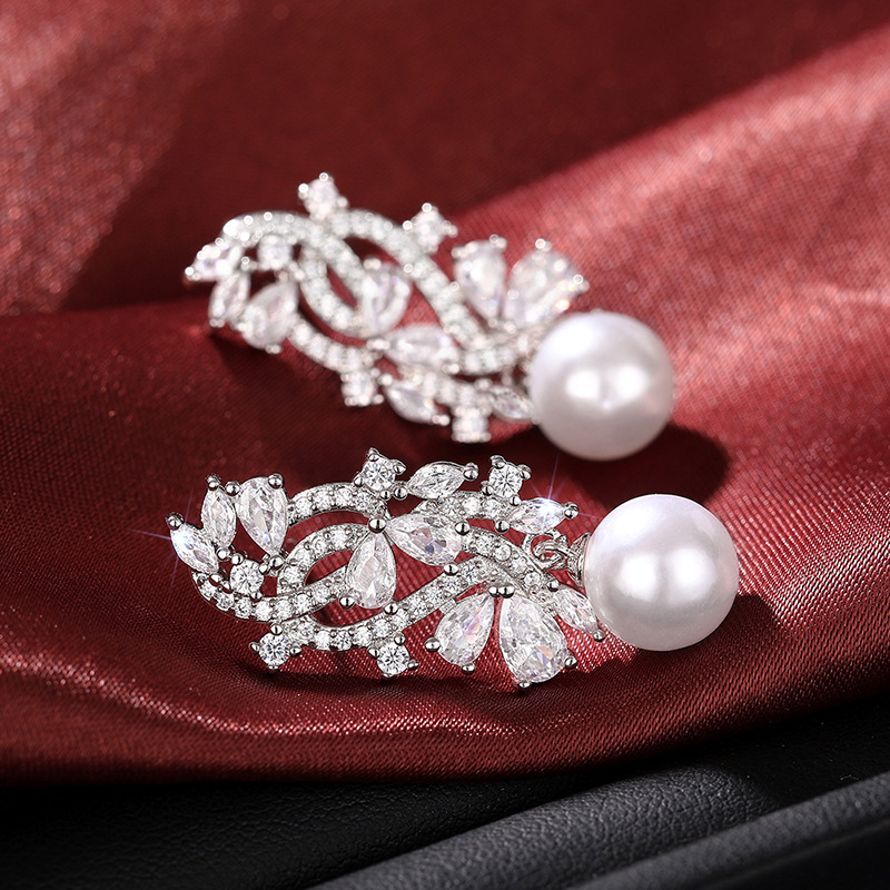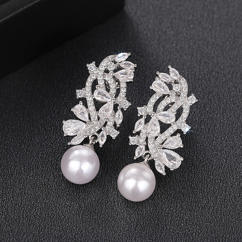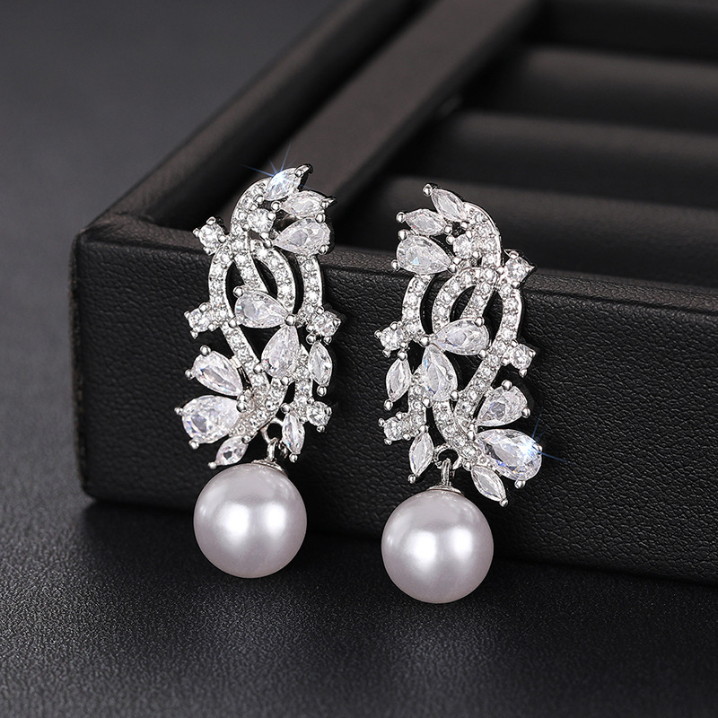 Boucles d'oreilles en laiton zircon cubique pavent, avec perle de plastique, Placage, normes différentes pour le choix & pavé de micro zircon & pour femme & creux, Vendu par paire