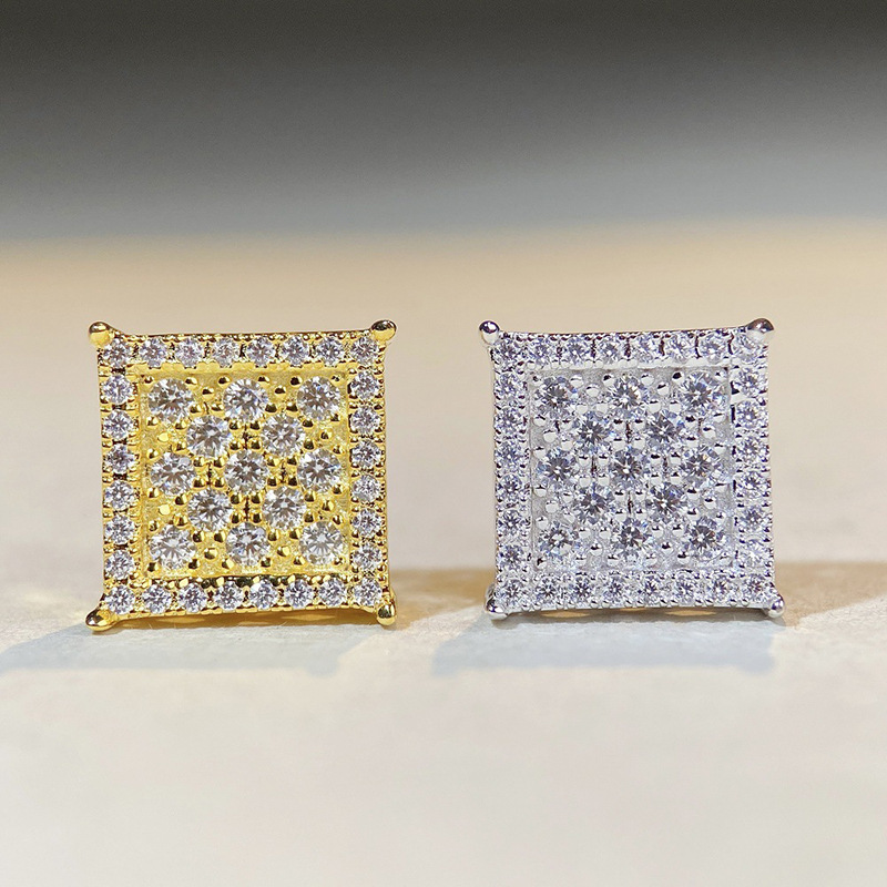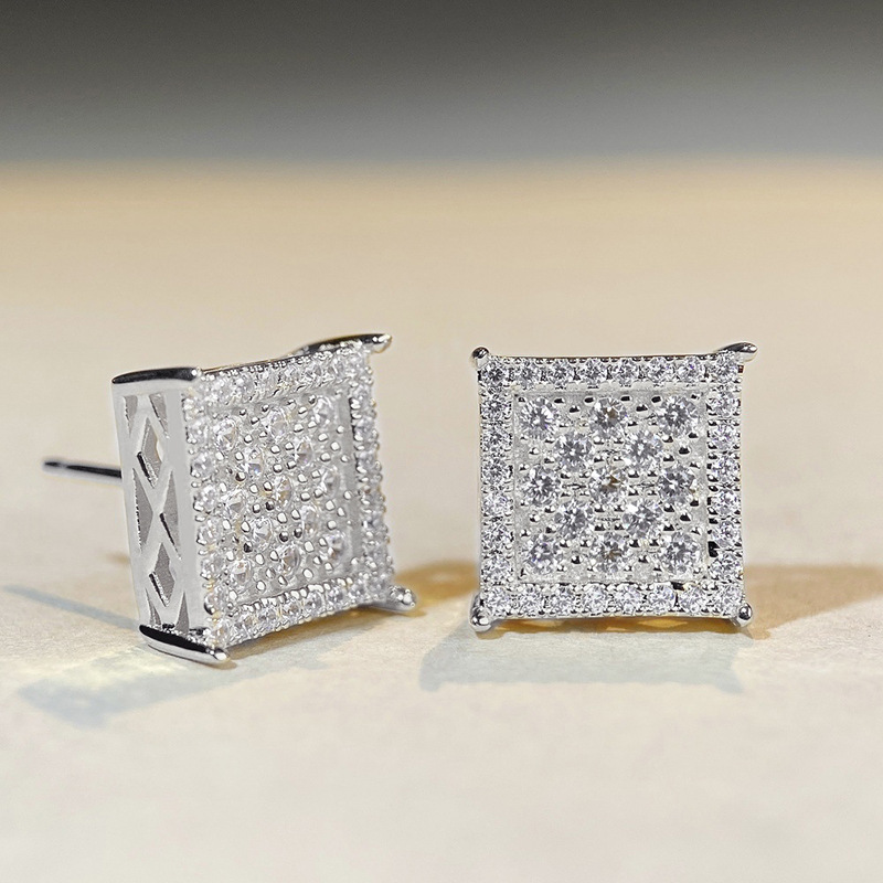 Boucles d'oreilles en laiton zircon cubique pavent, Carré, Placage, bijoux de mode & pavé de micro zircon & pour femme, plus de couleurs à choisir, Vendu par paire
