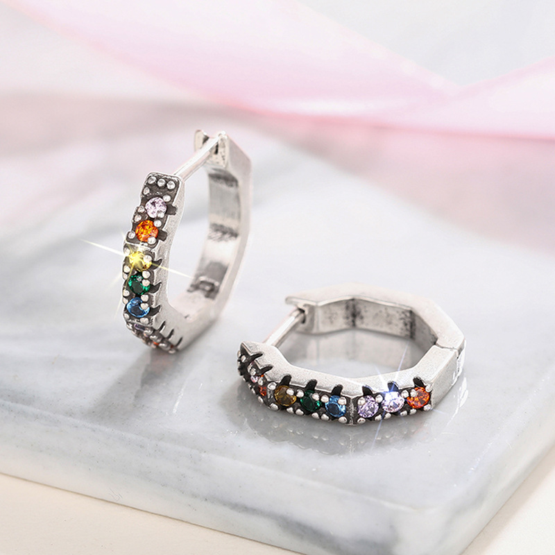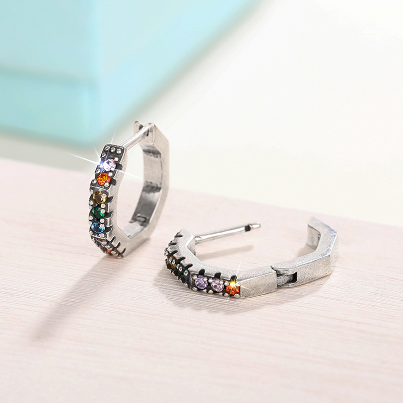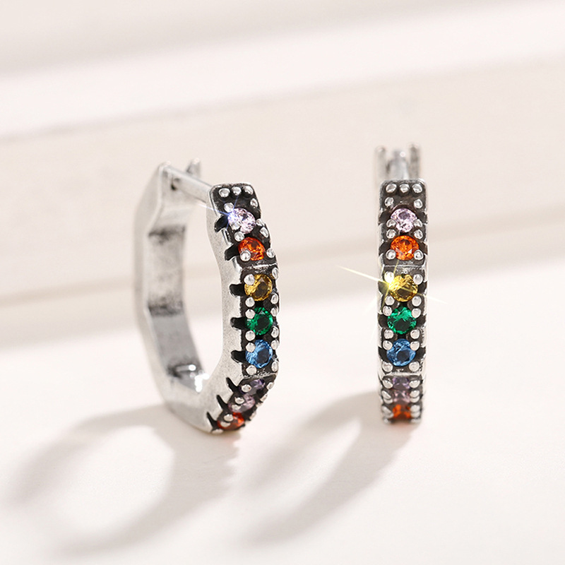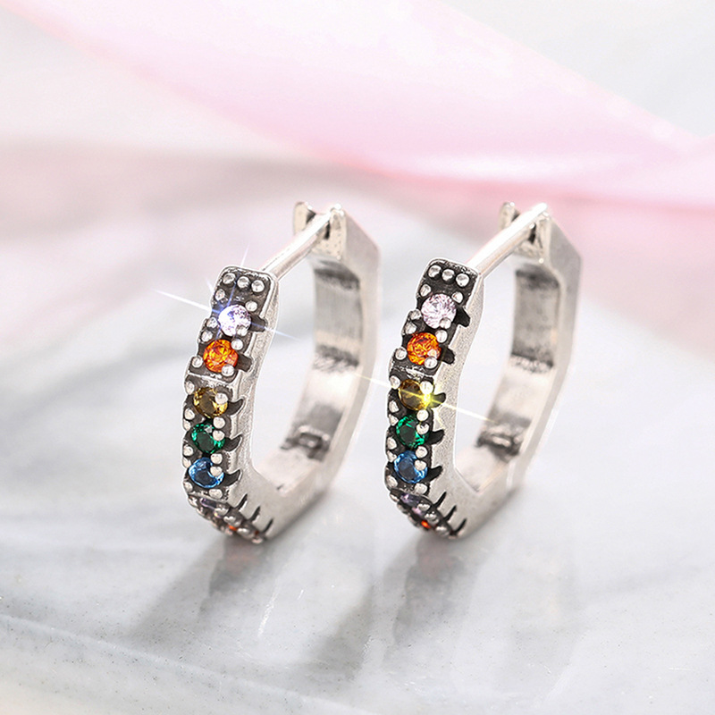 Boucles d'oreilles en laiton zircon cubique pavent, hexagone, Placage, bijoux de mode & pavé de micro zircon & pour femme, plus de couleurs à choisir, Vendu par paire