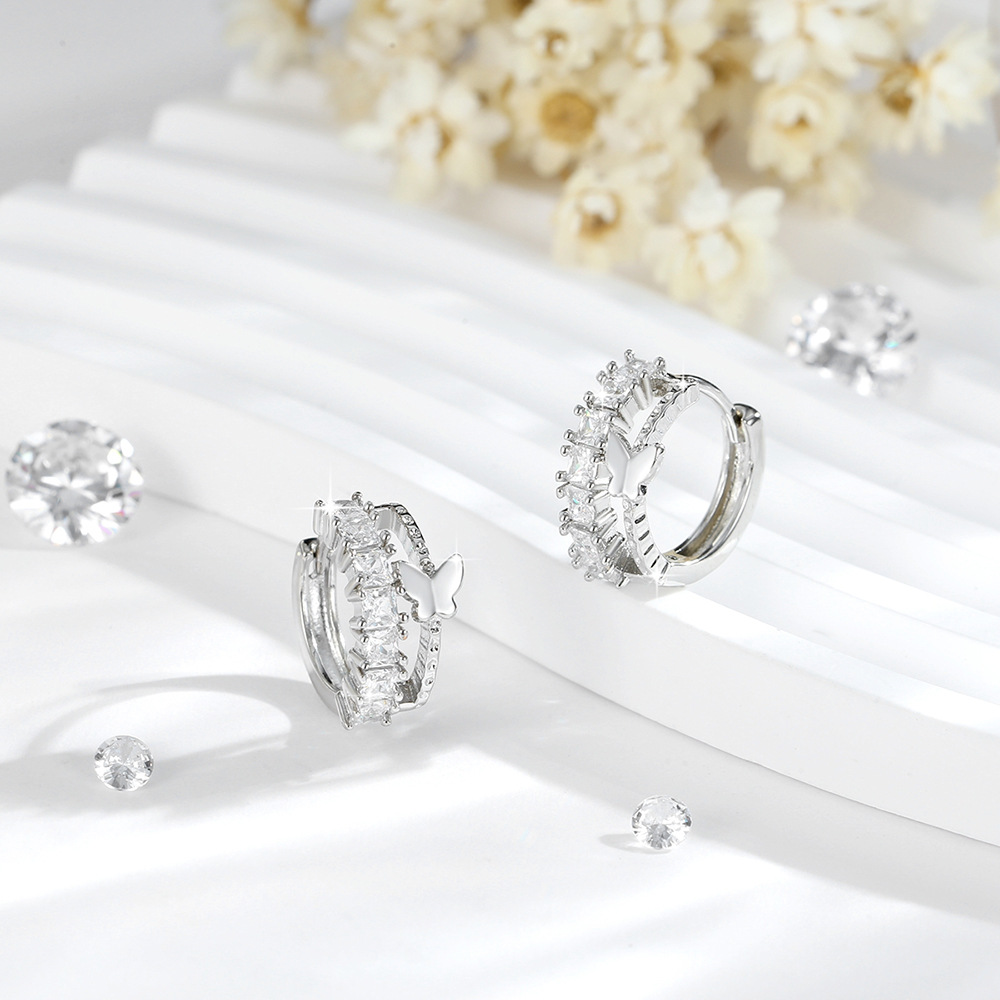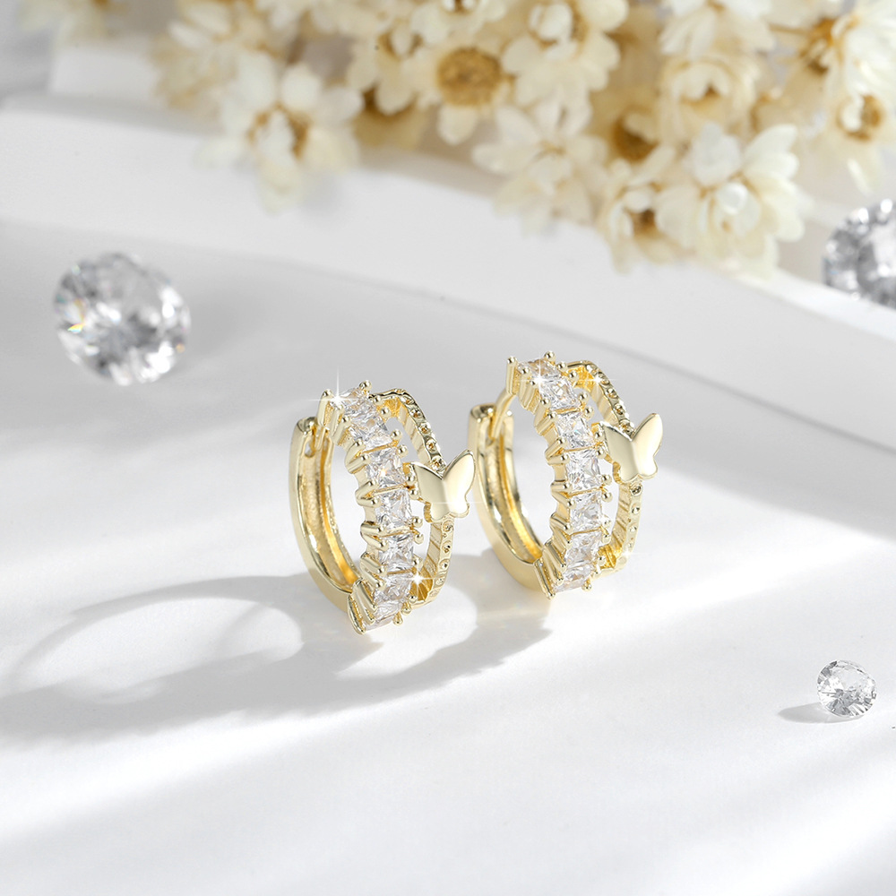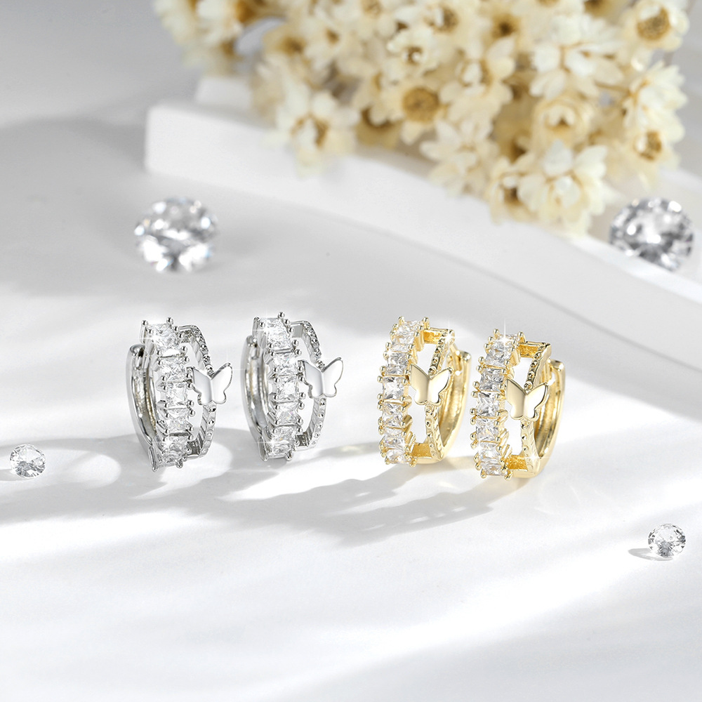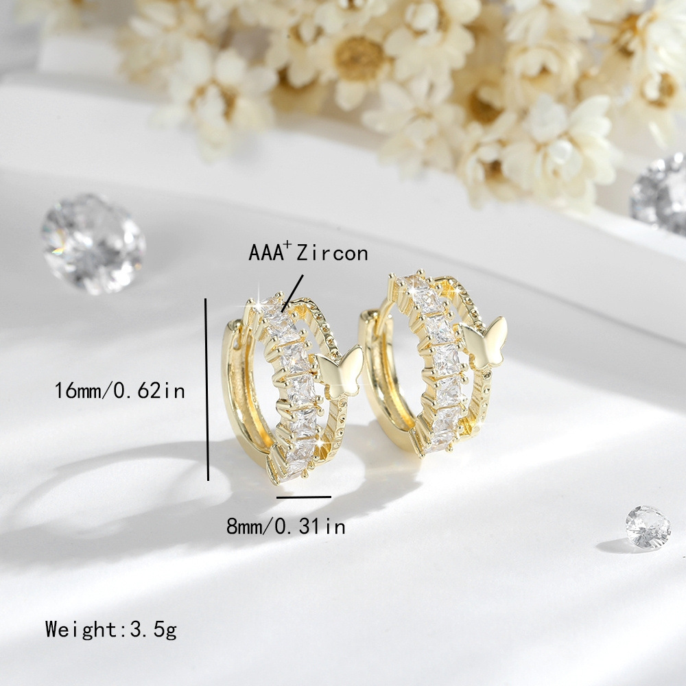 Boucles d'oreilles en laiton zircon cubique pavent, Placage, trois pièces & pour femme, doré, Vendu par fixé