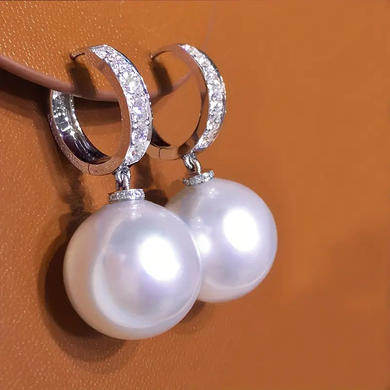 Boucles d'oreilles en laiton zircon cubique pavent, avec perle de plastique, Placage, bijoux de mode & pavé de micro zircon & pour femme, Vendu par paire