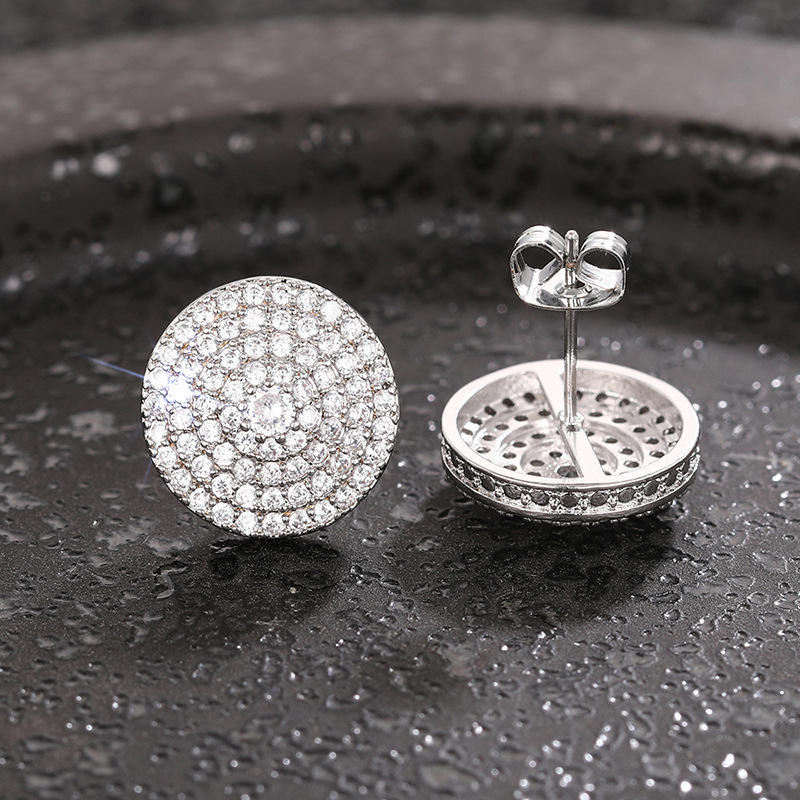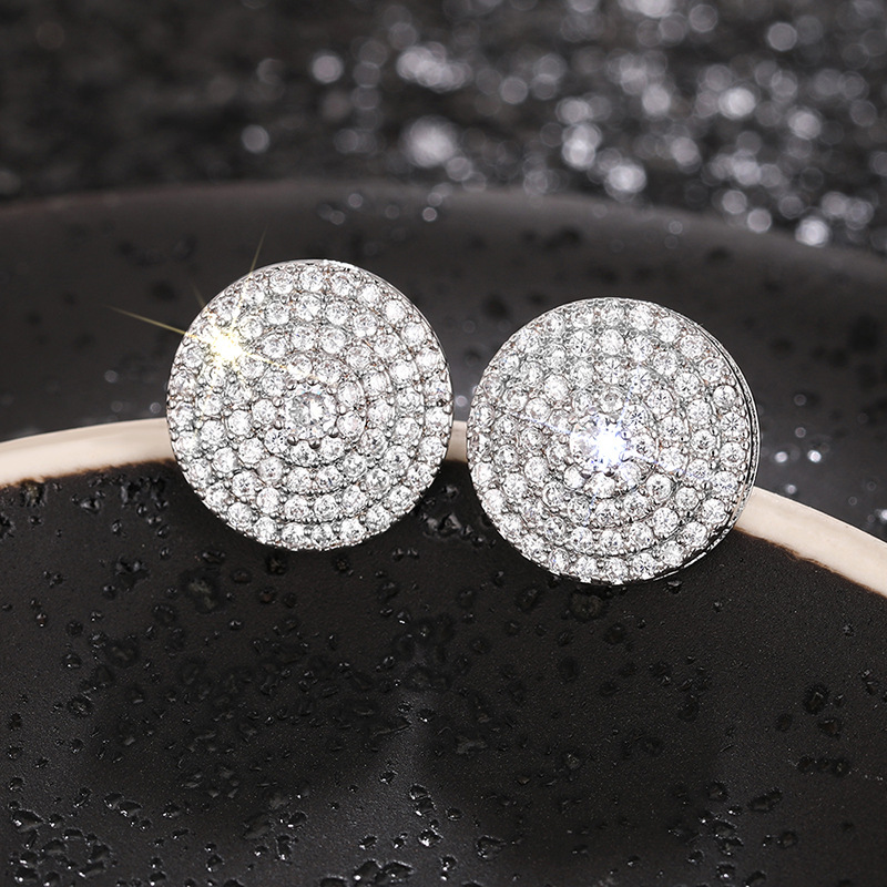 Boucles d'oreilles en laiton zircon cubique pavent, Rond, Placage, bijoux de mode & pavé de micro zircon & pour femme, Vendu par paire