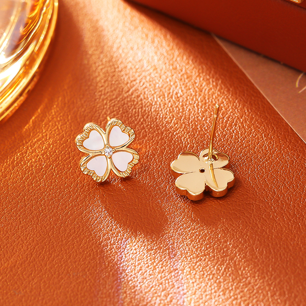Boucles d'oreilles en laiton zircon cubique pavent, Trèfle à quatre feuilles, Plaqué d'or, bijoux de mode & pavé de micro zircon & pour femme, Vendu par paire