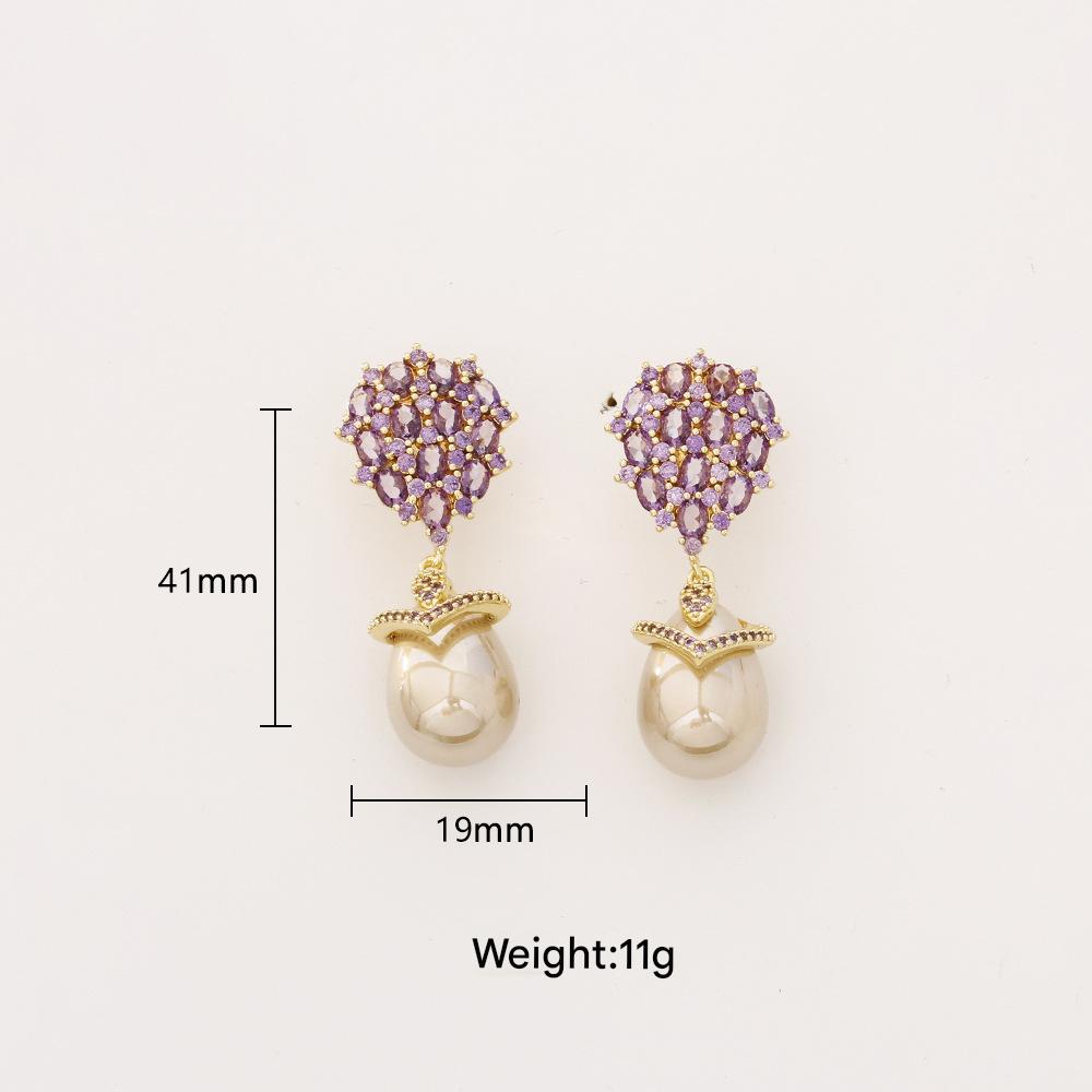 Boucles d'oreilles en laiton zircon cubique pavent, avec perle de plastique, Placage, bijoux de mode & pavé de micro zircon & pour femme, plus de couleurs à choisir, Vendu par paire
