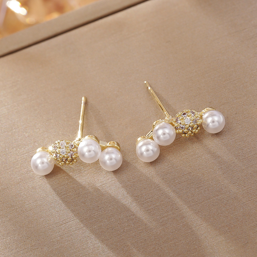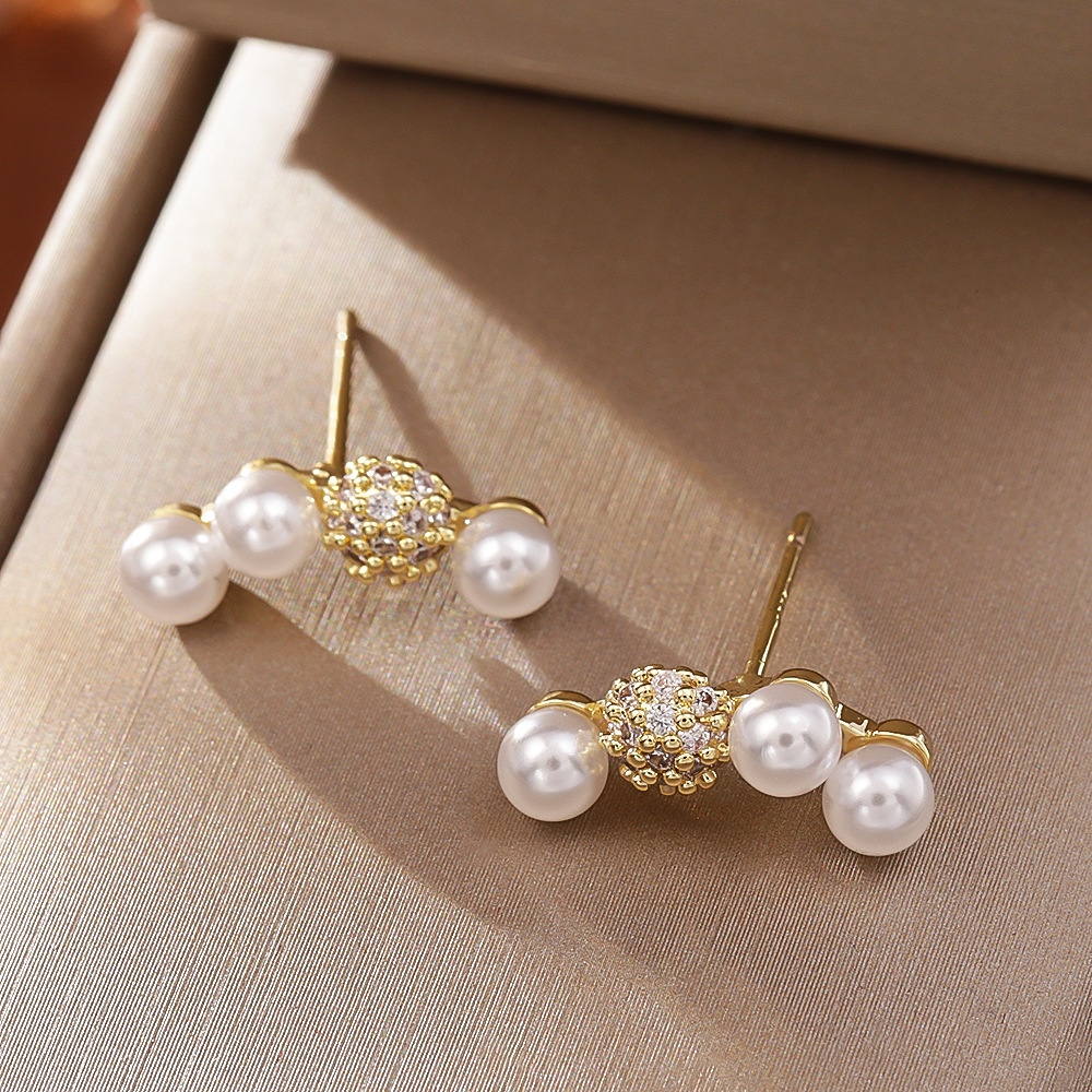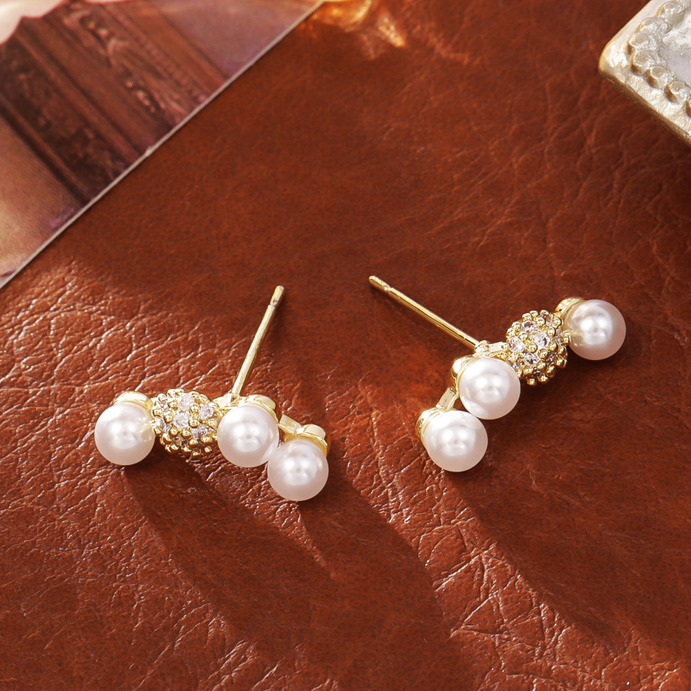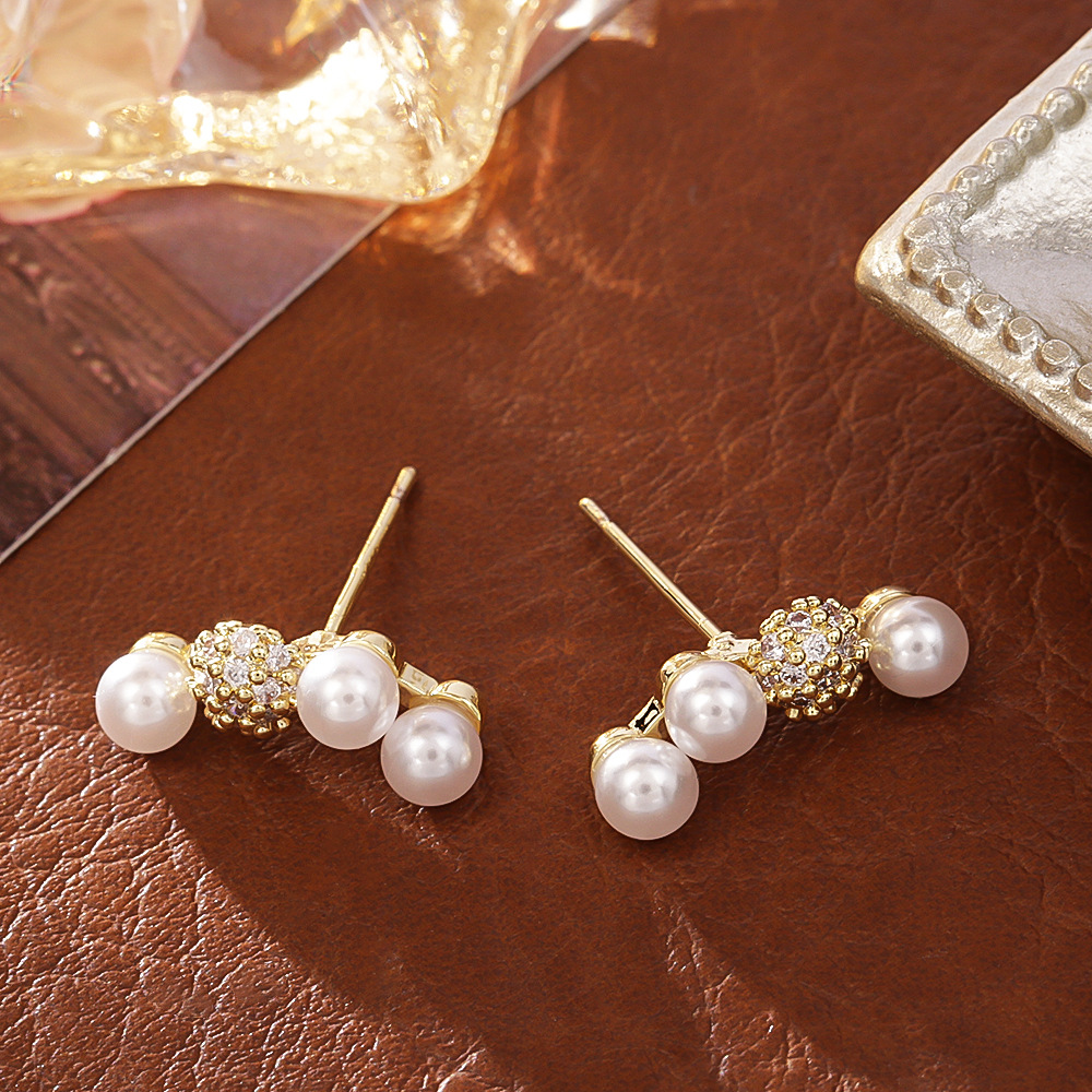 Boucles d'oreilles en laiton zircon cubique pavent, avec perle de plastique, Plaqué d'or, bijoux de mode & pavé de micro zircon & pour femme, Vendu par paire