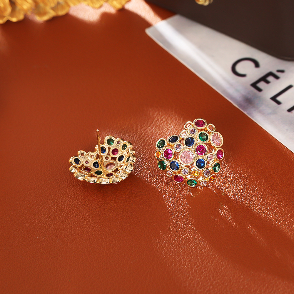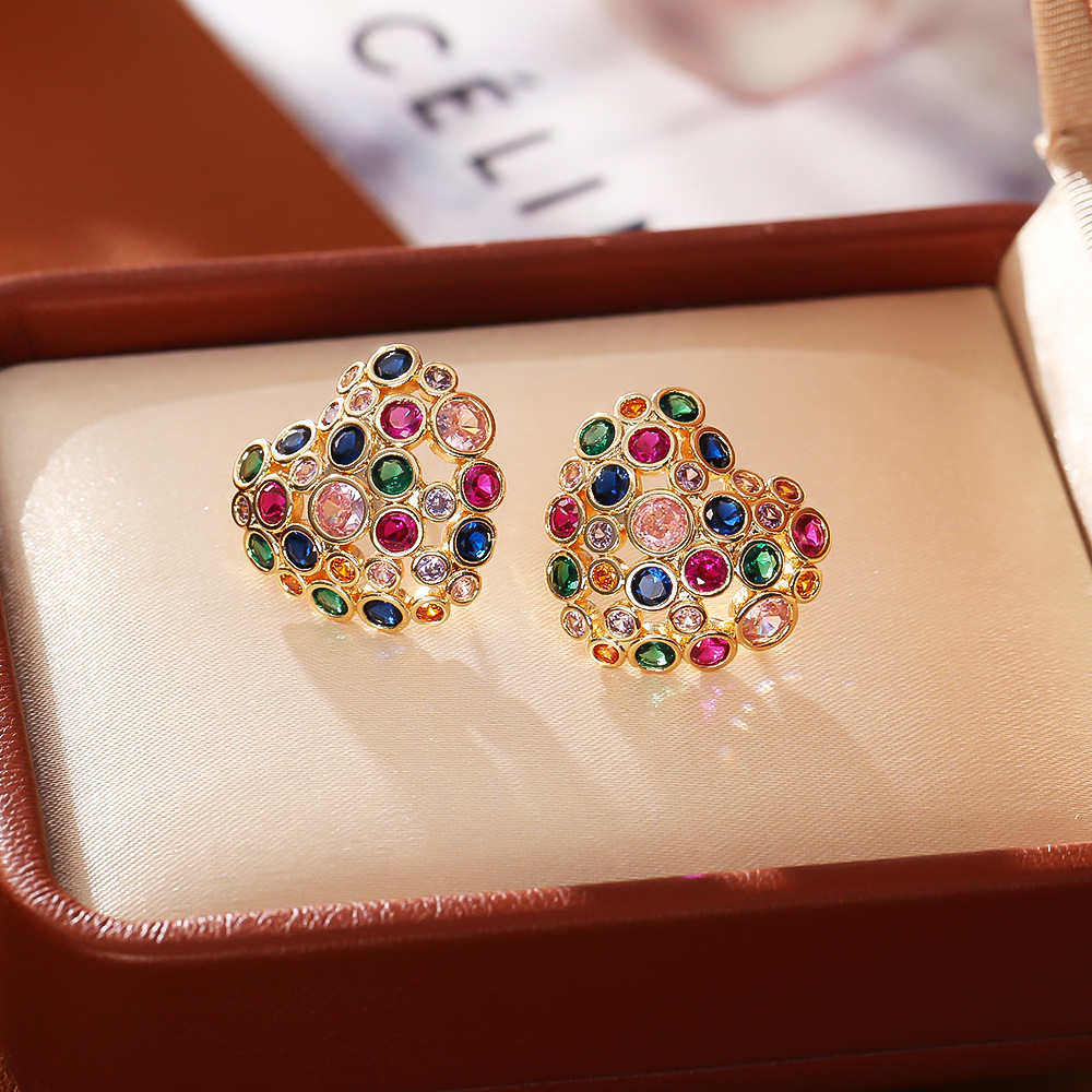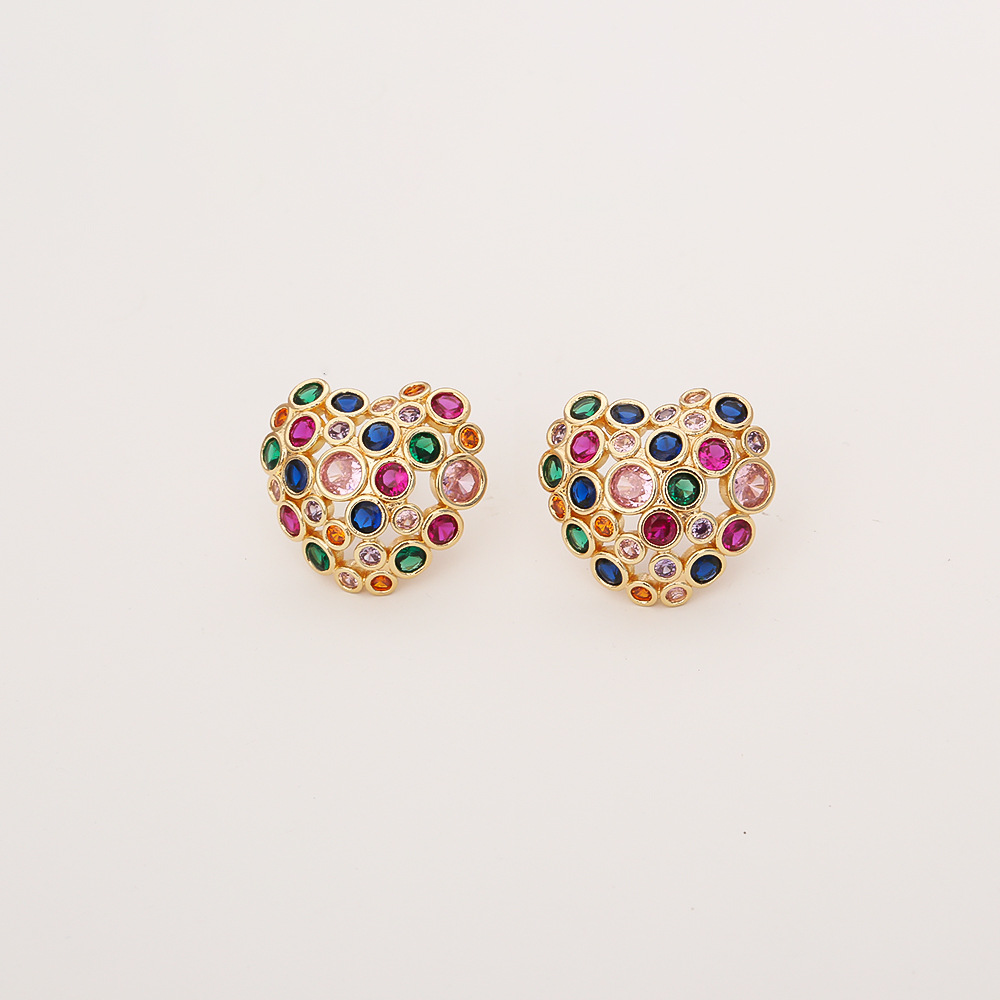 Boucles d'oreilles en laiton zircon cubique pavent, Plaqué d'or, bijoux de mode & pavé de micro zircon & pour femme, multicolore, Vendu par paire