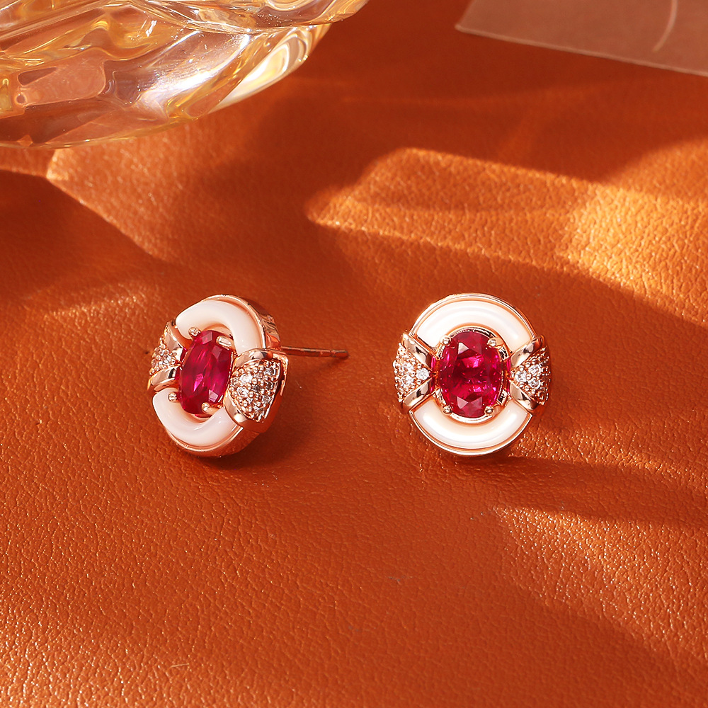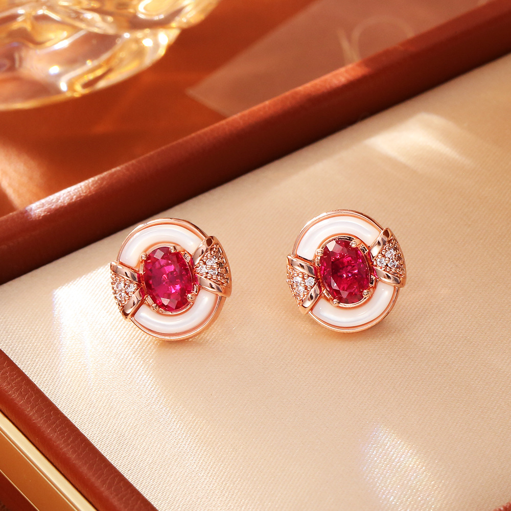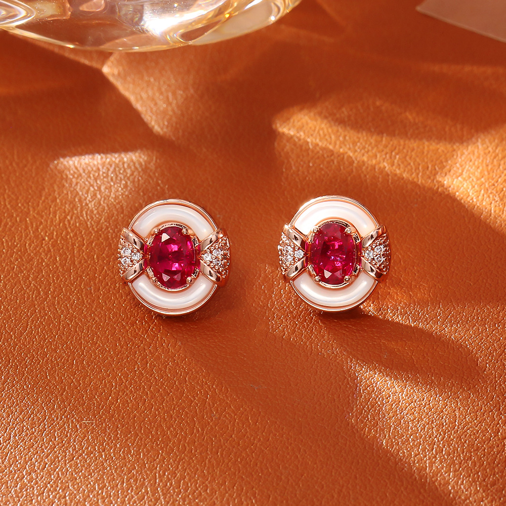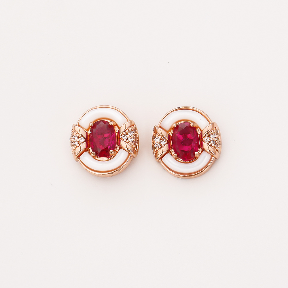 Boucles d'oreilles en laiton zircon cubique pavent, Plaqué d'or, bijoux de mode & pavé de micro zircon & pour femme, rouge, Vendu par paire
