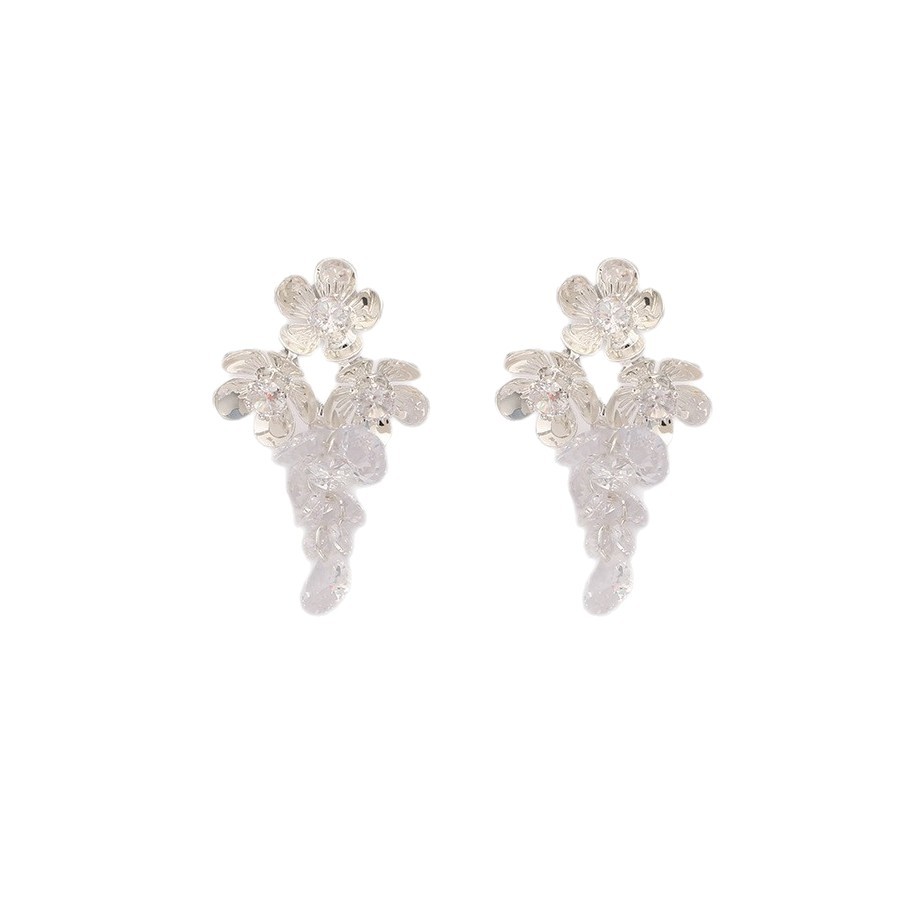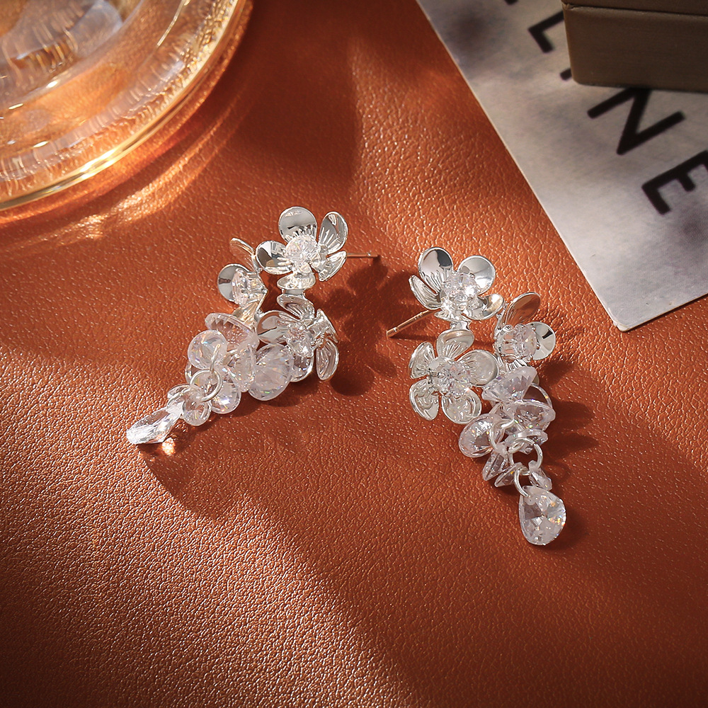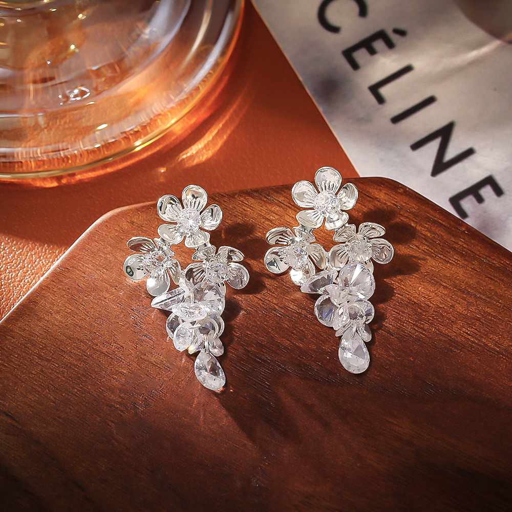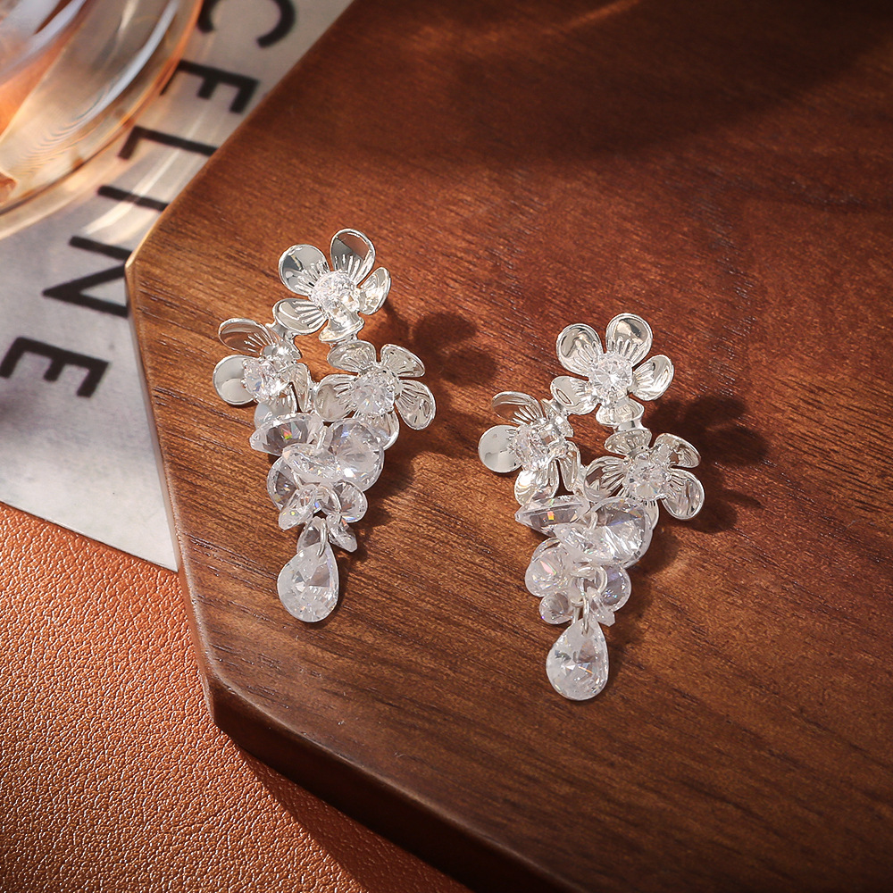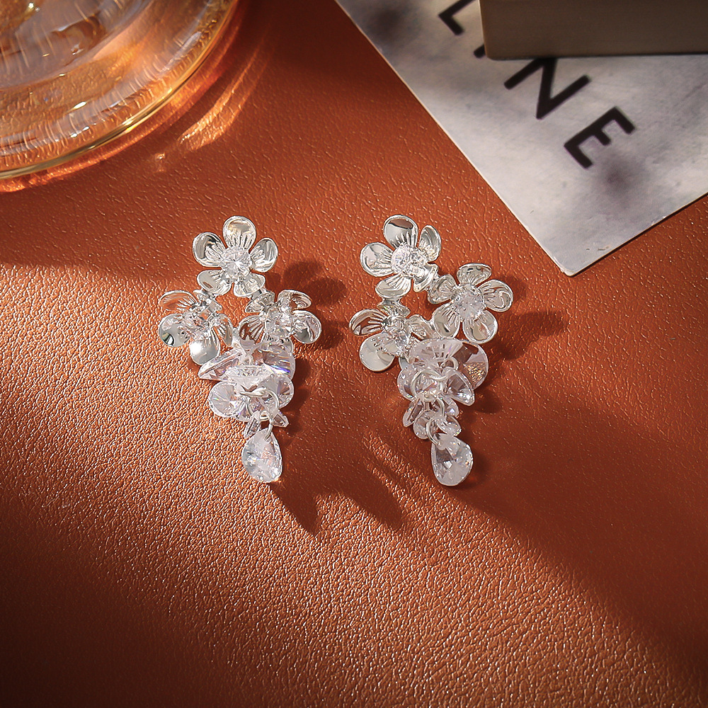 Boucles d'oreilles en laiton zircon cubique pavent, fleur, Placage, bijoux de mode & pavé de micro zircon & pour femme, argent, Vendu par paire
