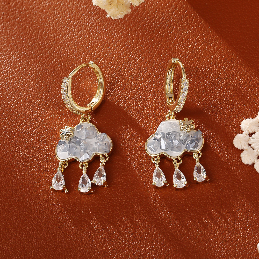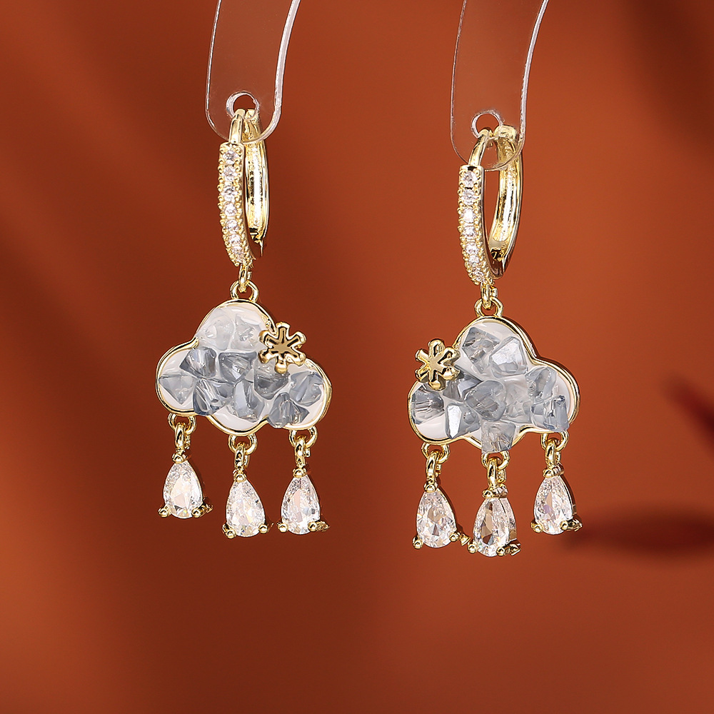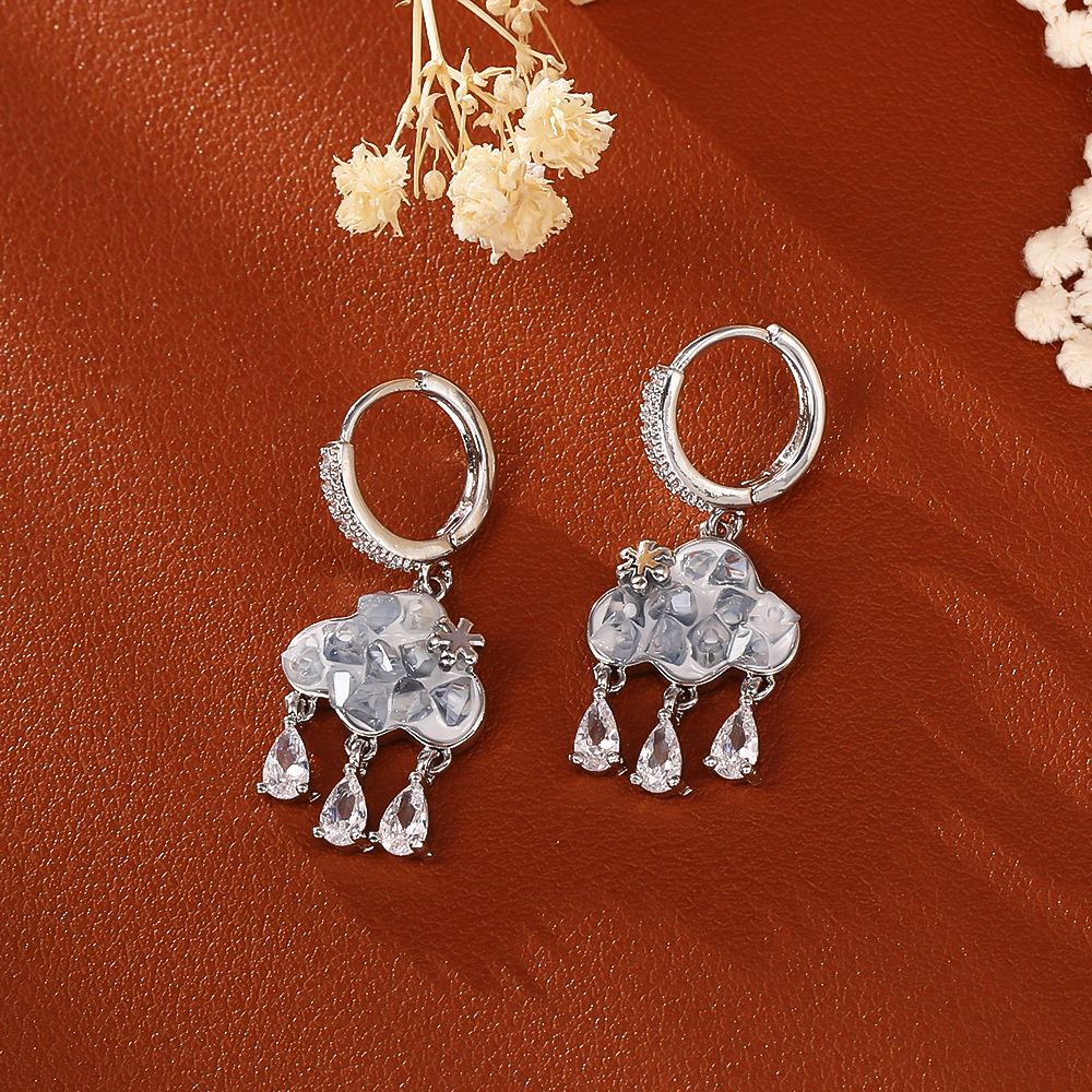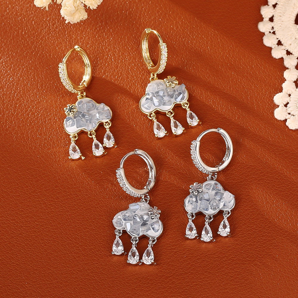 Boucles d'oreilles en laiton zircon cubique pavent, Nuage, Placage, bijoux de mode & pavé de micro zircon & pour femme, plus de couleurs à choisir, Vendu par paire