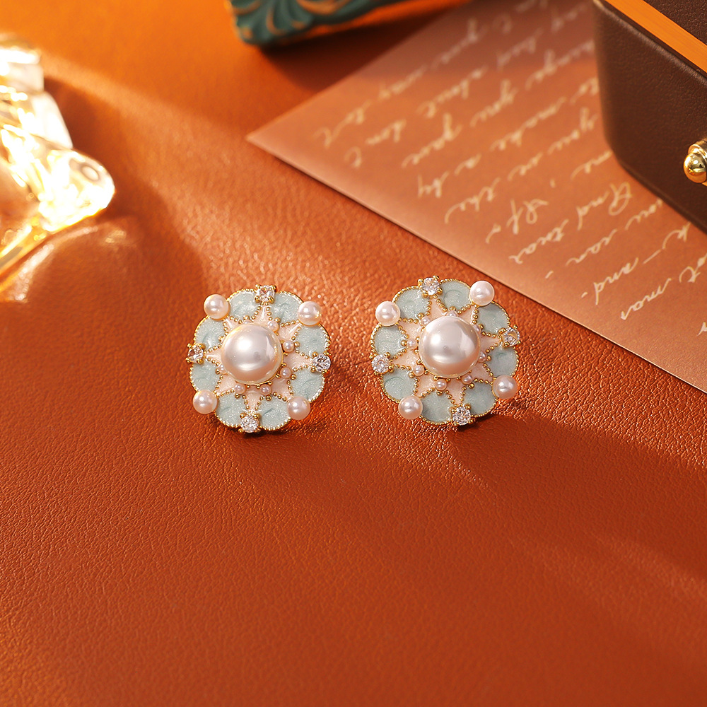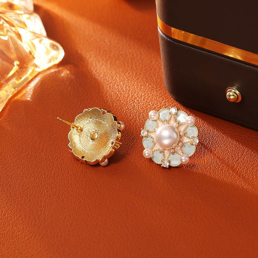 Boucles d'oreilles en laiton zircon cubique pavent, avec perle de plastique, Plaqué d'or, bijoux de mode & pavé de micro zircon & pour femme & émail, Vendu par paire