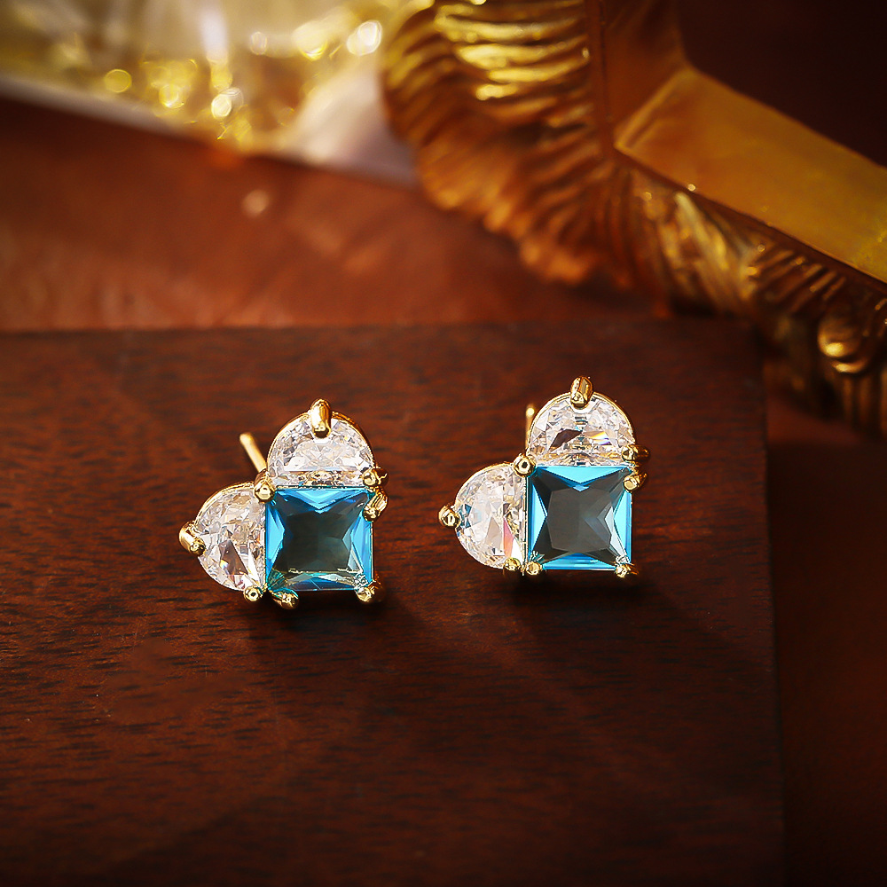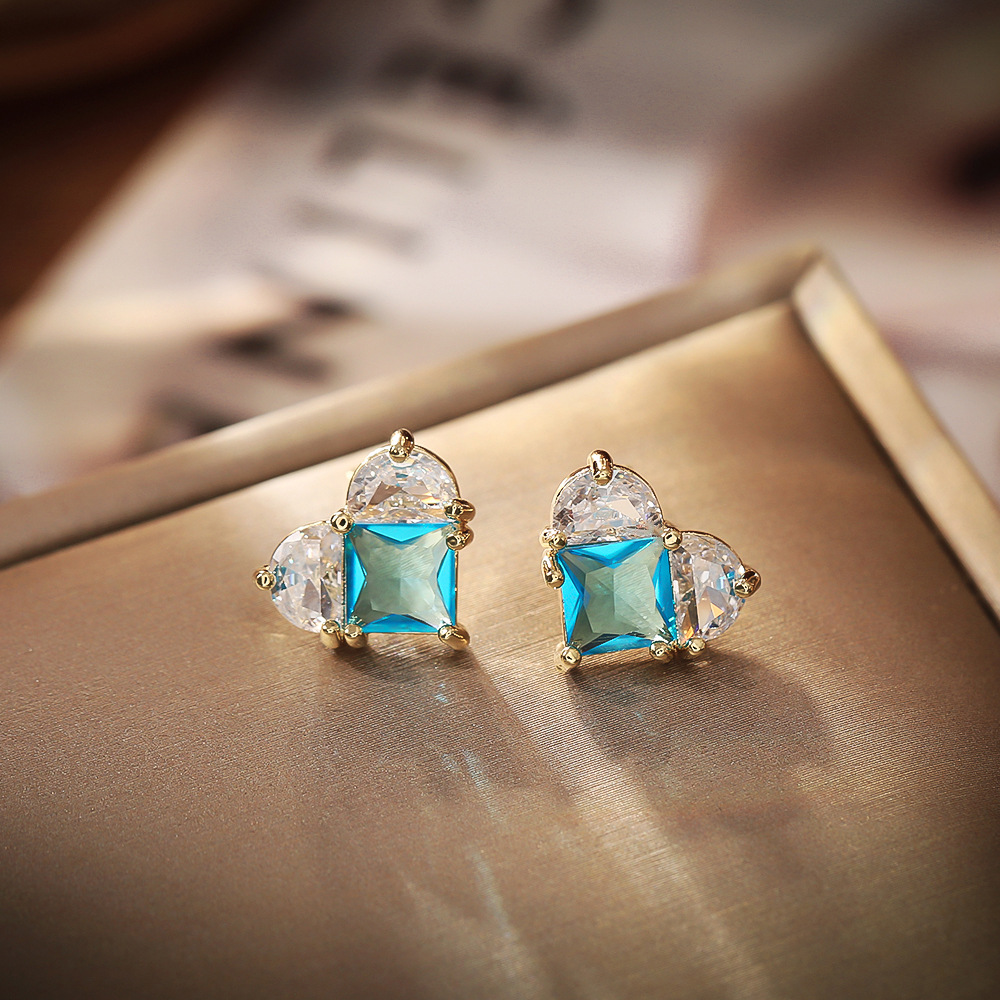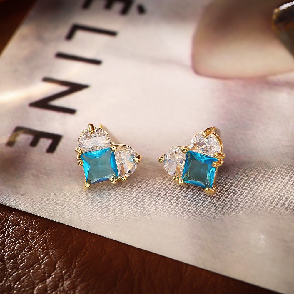 Boucles d'oreilles en laiton zircon cubique pavent, avec zircon cubique, coeur, Plaqué d'or, bijoux de mode & pour femme, Vendu par paire