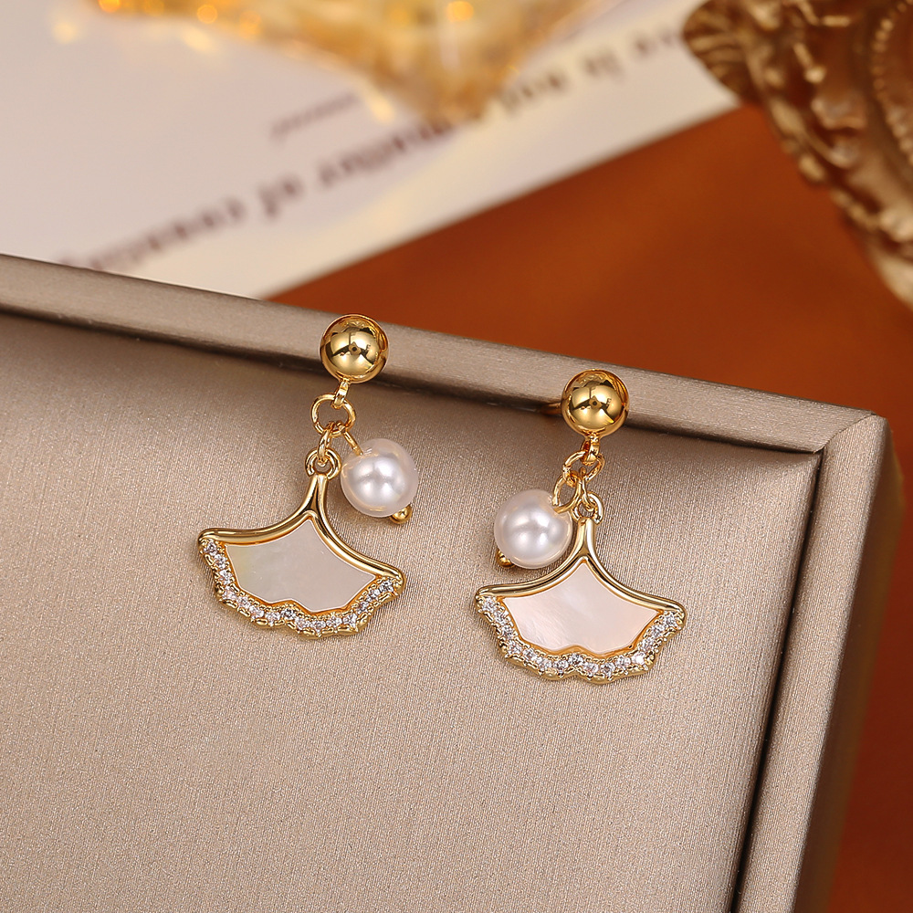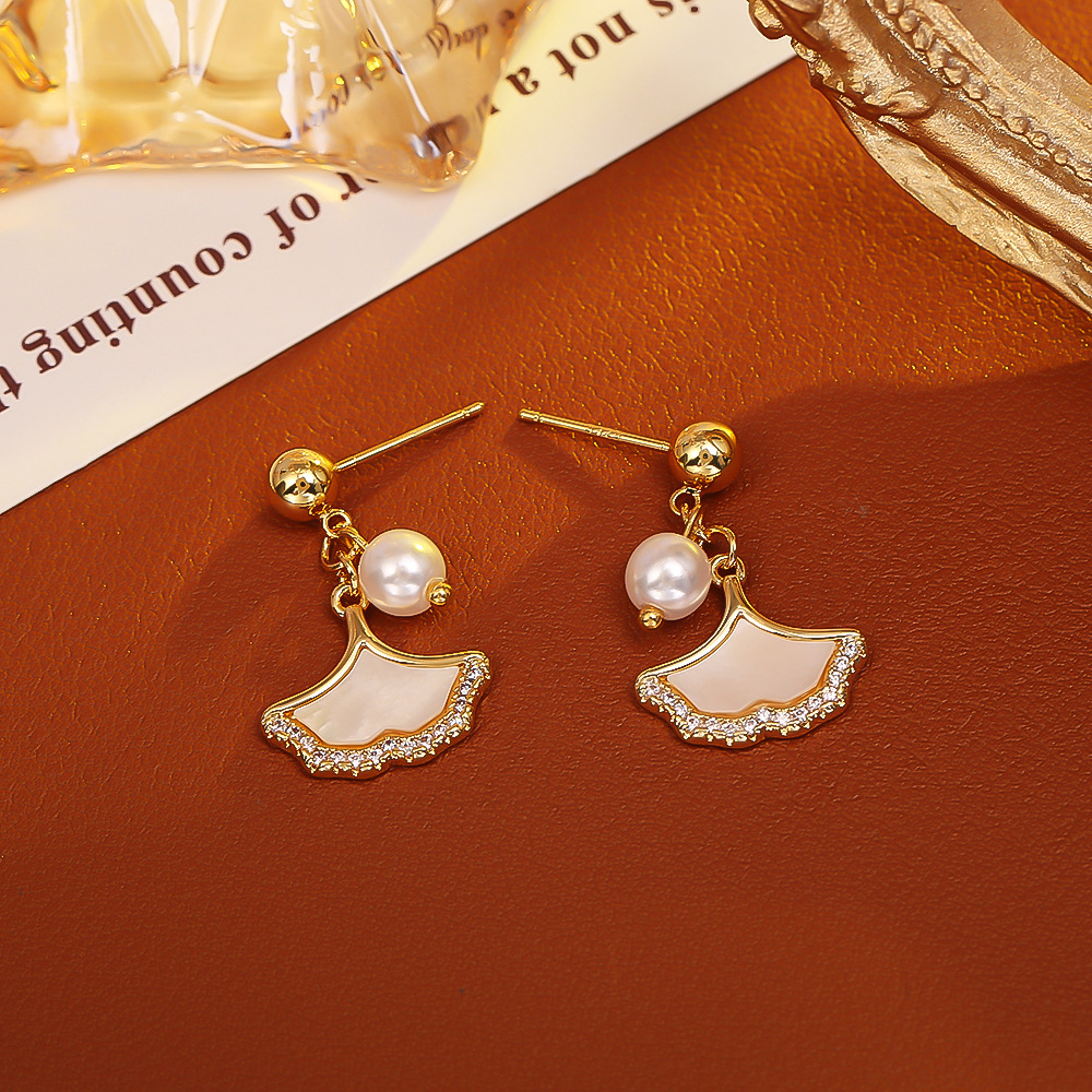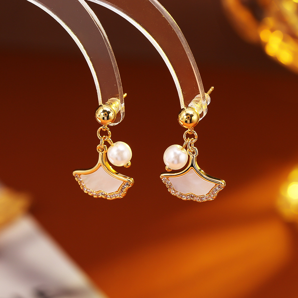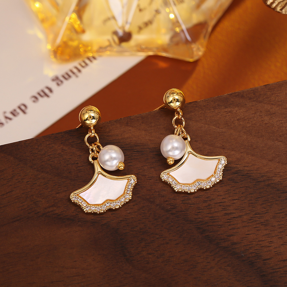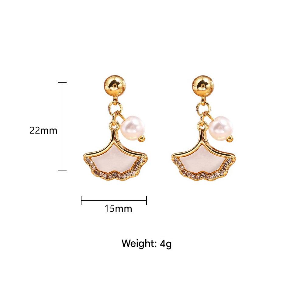 Boucles d'oreilles en laiton zircon cubique pavent, avec perle de plastique, Ginkgo Feuille, Plaqué d'or, bijoux de mode & pavé de micro zircon & pour femme, Vendu par paire