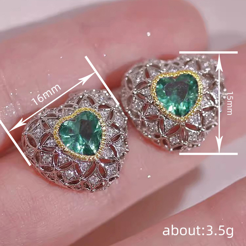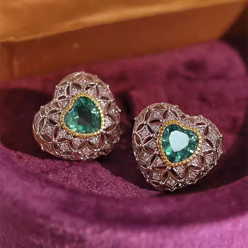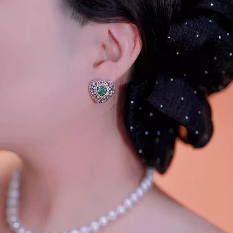 Boucles d'oreilles en laiton zircon cubique pavent, coeur, Placage, pavé de micro zircon & pour femme & creux, Vendu par paire