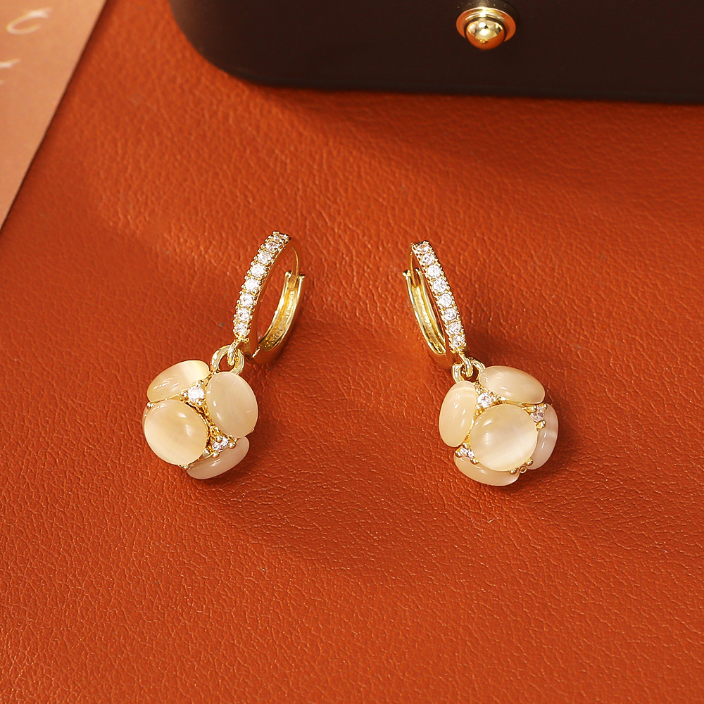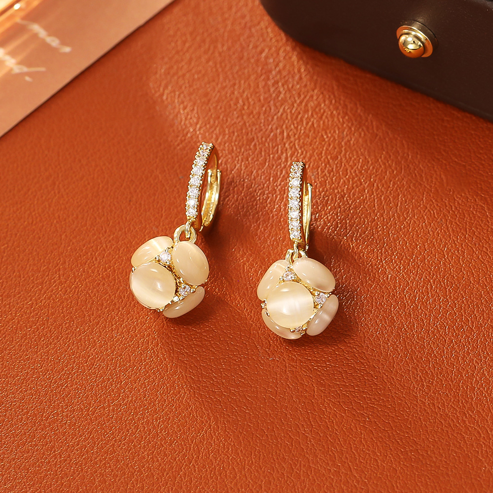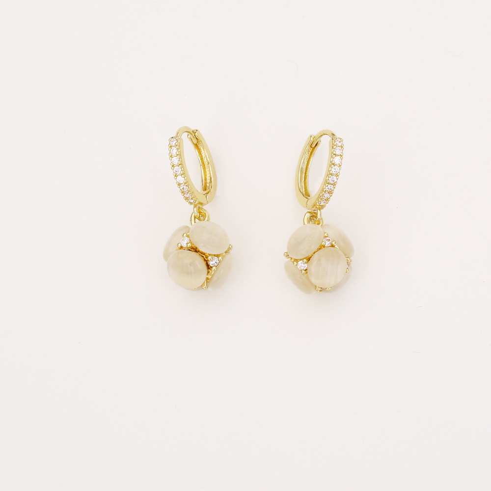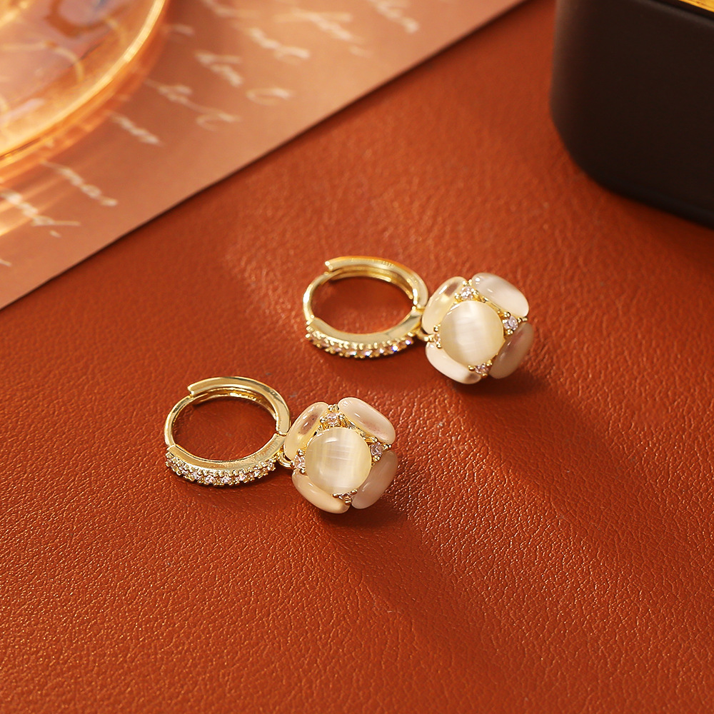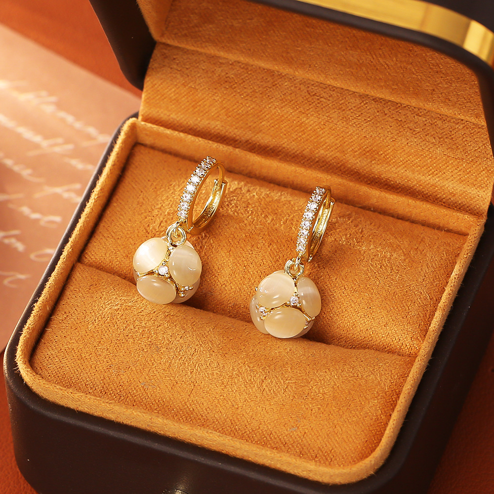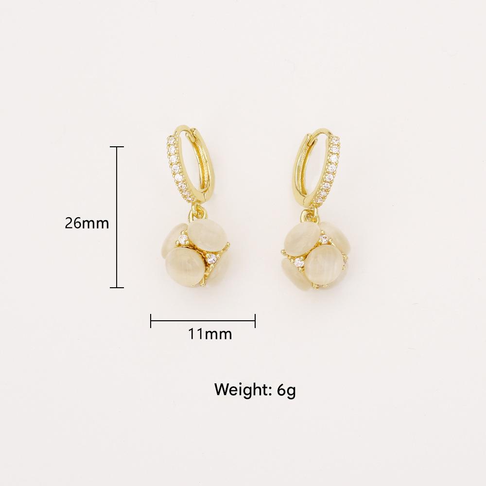 Boucles d'oreilles en laiton zircon cubique pavent, avec Oeil de chat, Plaqué d'or, bijoux de mode & pavé de micro zircon & pour femme, Vendu par paire
