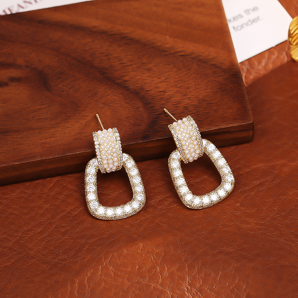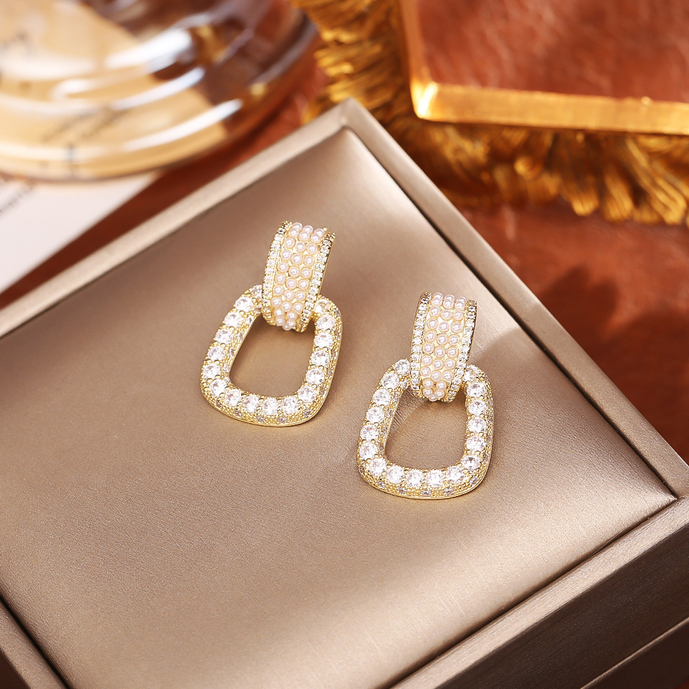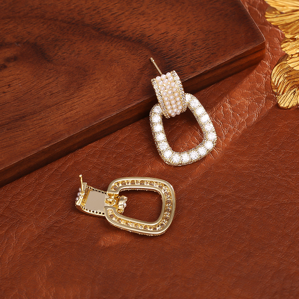 Boucles d'oreilles en laiton zircon cubique pavent, avec Seedbead, Plaqué d'or, bijoux de mode & pavé de micro zircon & pour femme, Vendu par paire