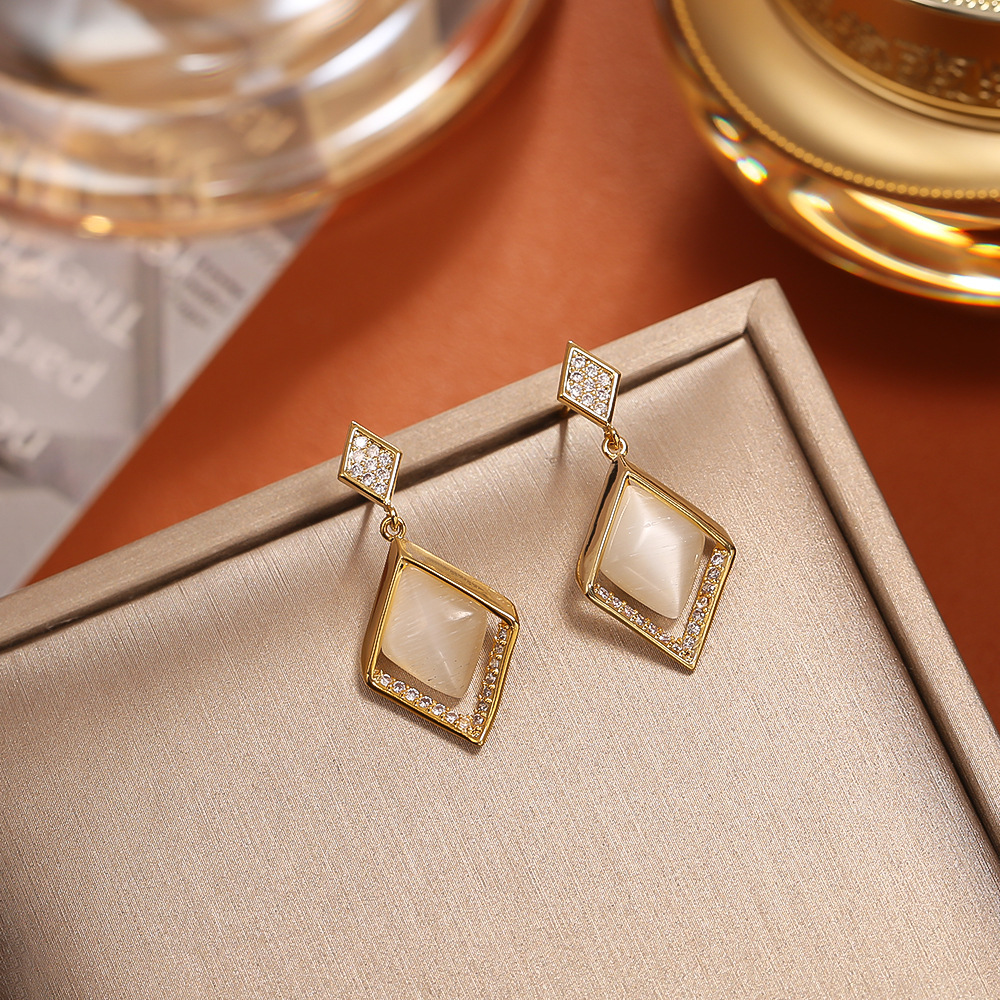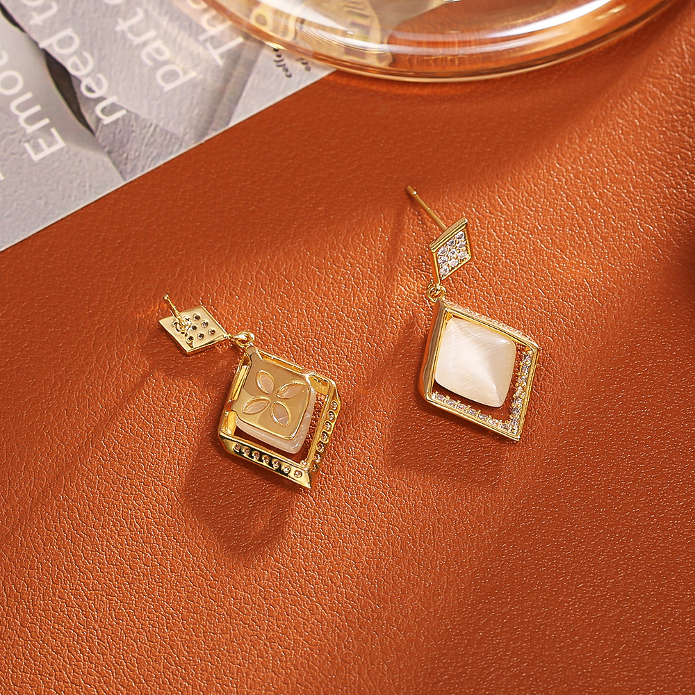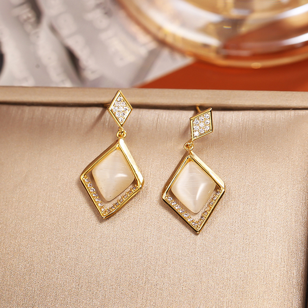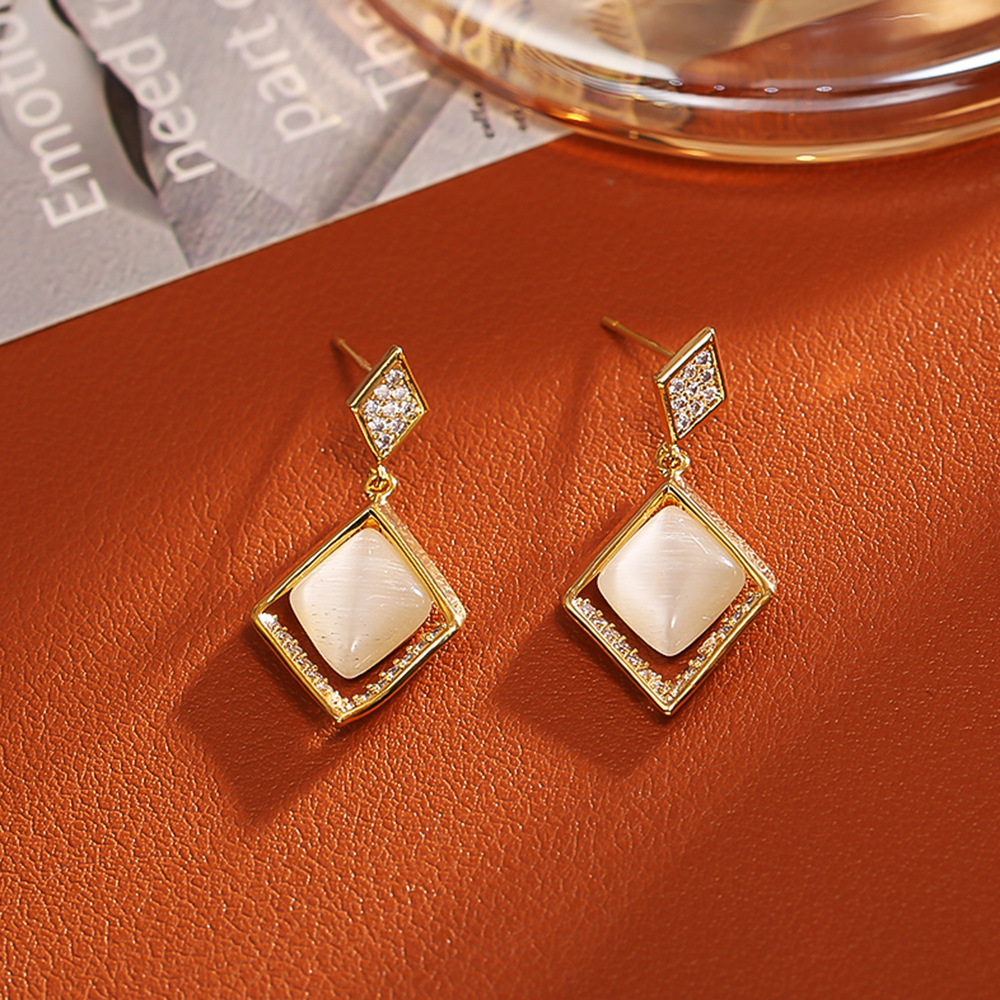 Boucles d'oreilles en laiton zircon cubique pavent, avec Oeil de chat, Plaqué d'or, bijoux de mode & pavé de micro zircon & pour femme, Vendu par paire