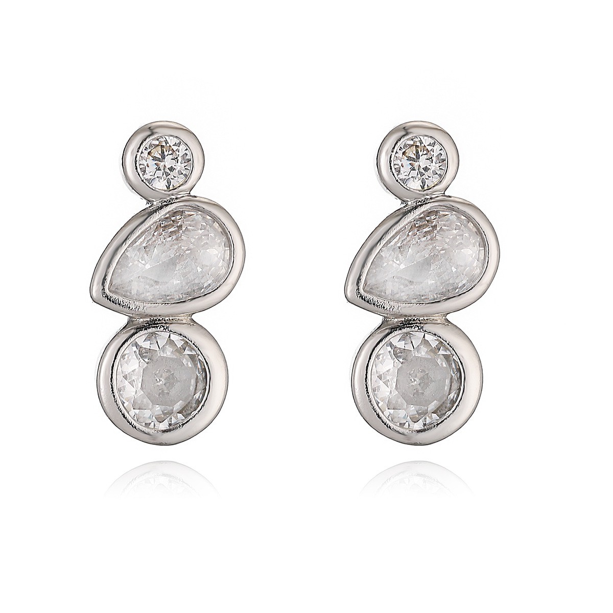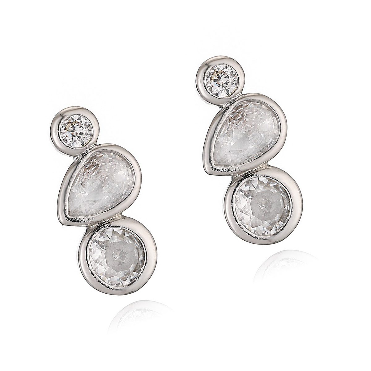 Boucles d'oreilles en laiton zircon cubique pavent, Placage, bijoux de mode & pavé de micro zircon & pour femme, argent, 14x7mm, Vendu par paire