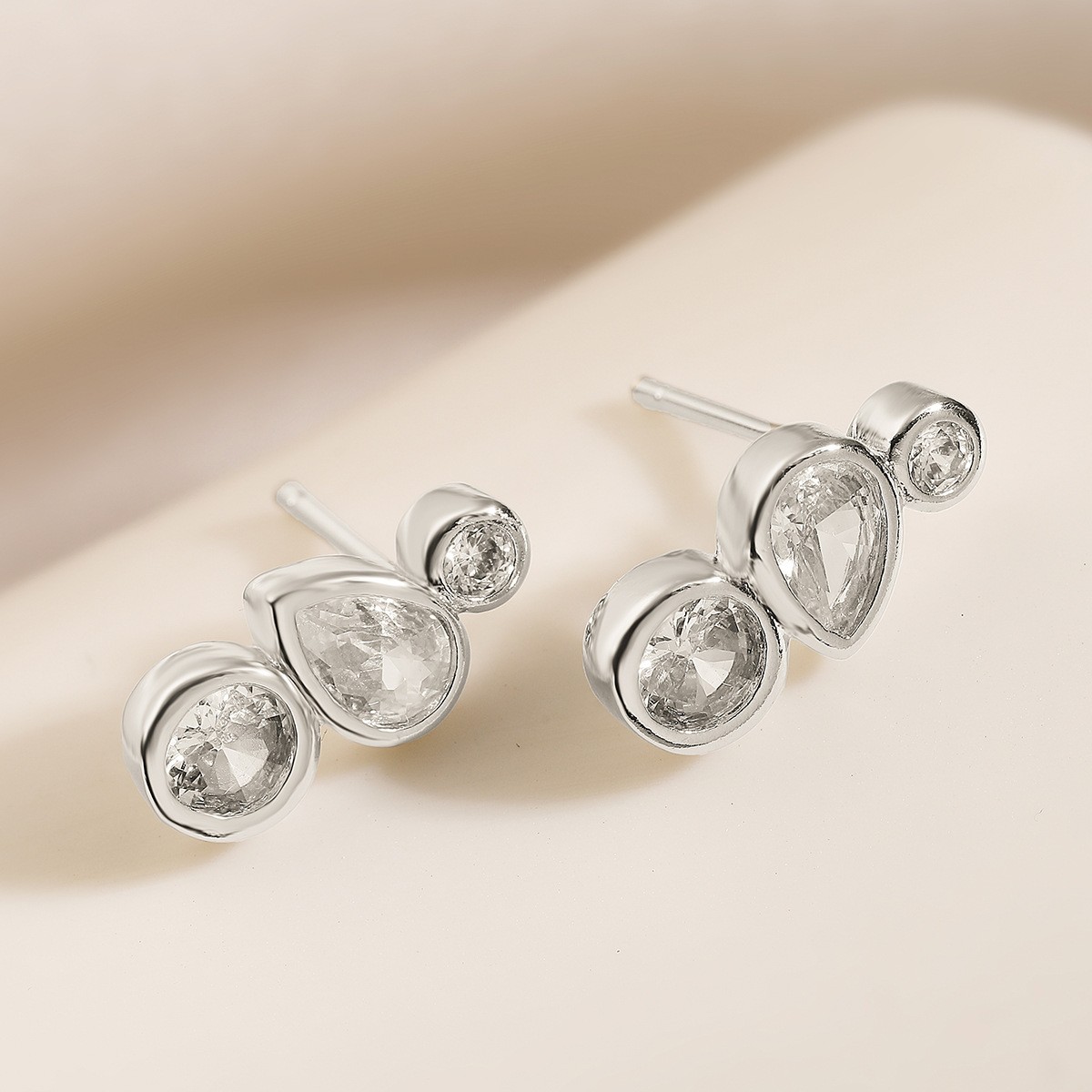 Boucles d'oreilles en laiton zircon cubique pavent, Placage, trois pièces & pour femme, doré, Vendu par fixé