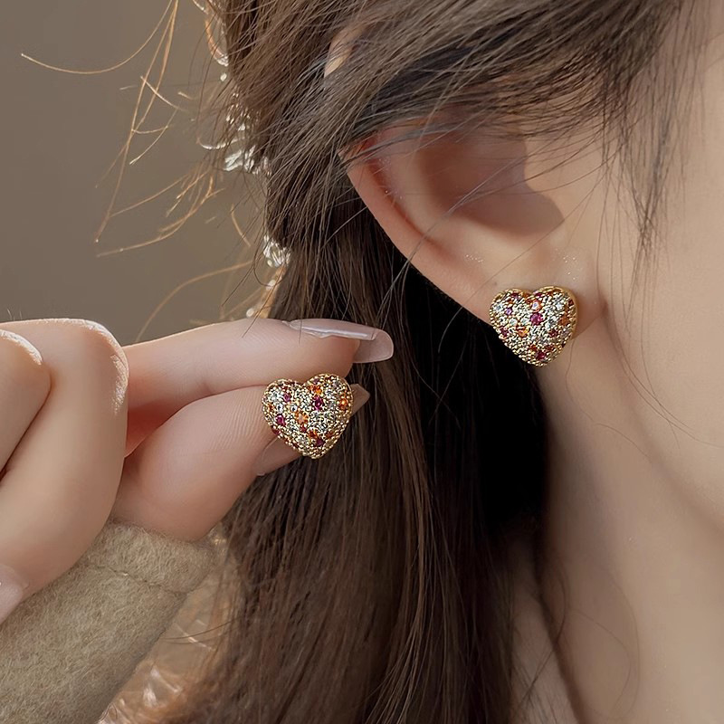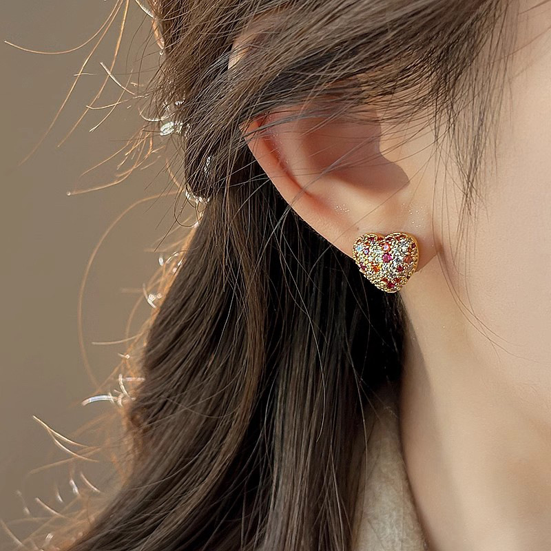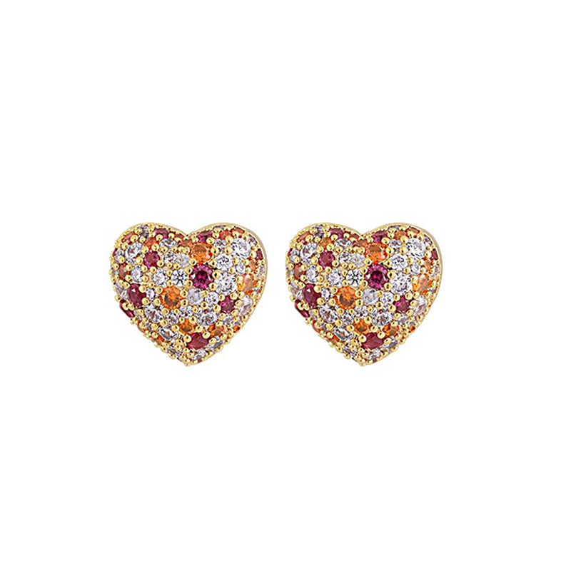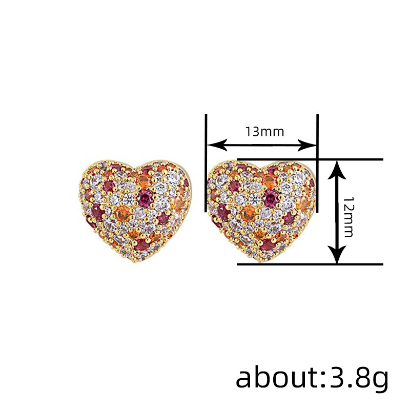 Boucles d'oreilles en laiton zircon cubique pavent, coeur, Placage, pavé de micro zircon & pour femme & deux tons, Vendu par paire
