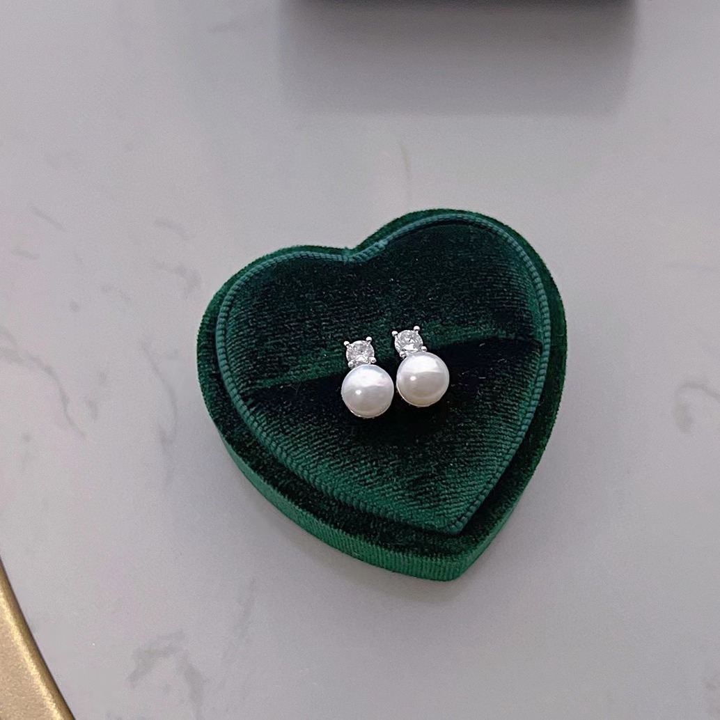 Boucles d'oreilles en perles d'eau douce, perle d'eau douce cultivée, Rond, bijoux de mode & pavé de micro zircon, blanc, 7x8mm, Vendu par paire
