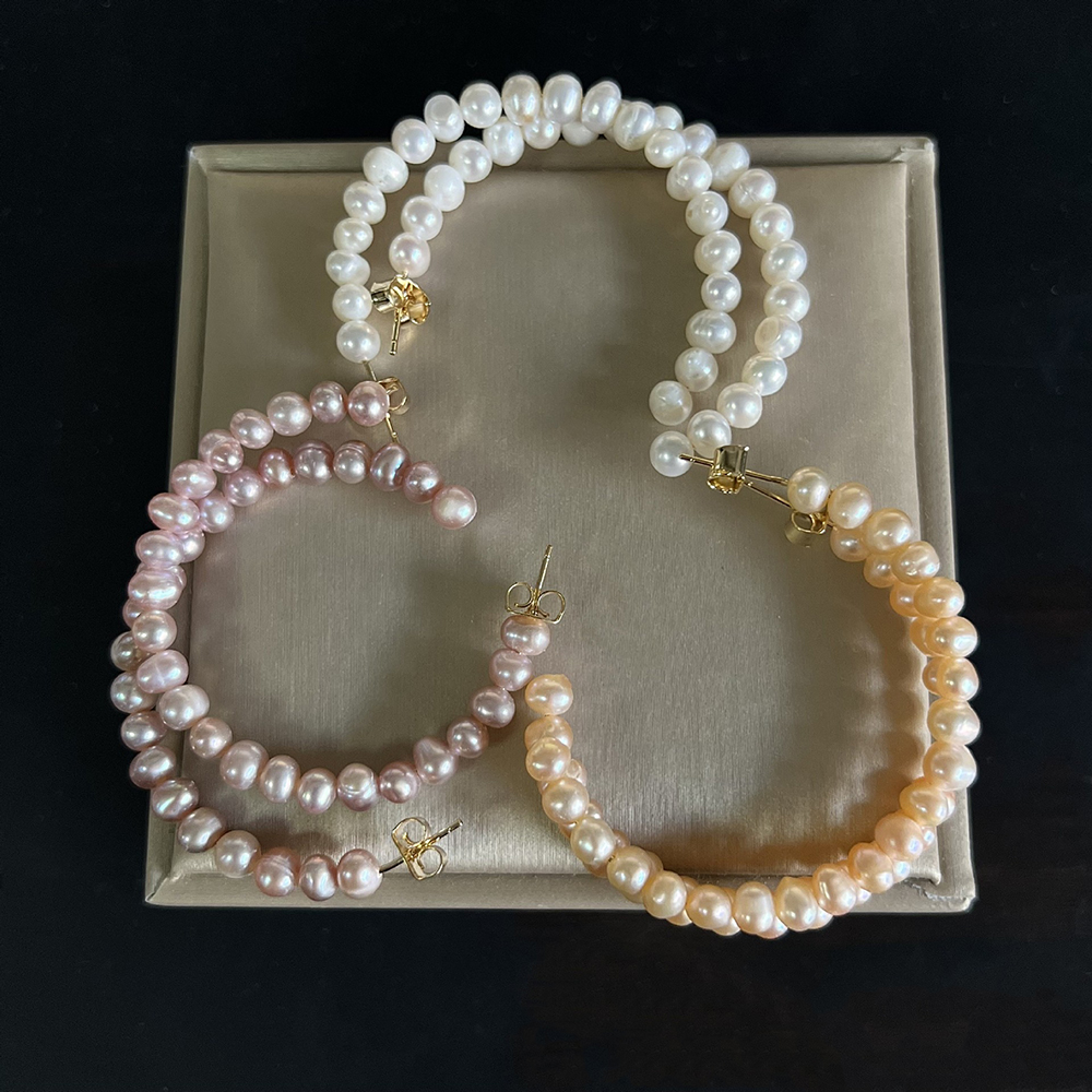 Boucles d'oreilles en perles d'eau douce, laiton, avec perle d'eau douce cultivée, Placage, bijoux de mode, couleurs mélangées, 10-14mm, Vendu par paire