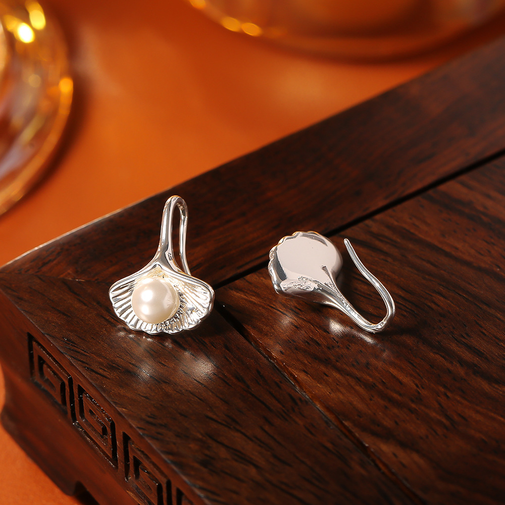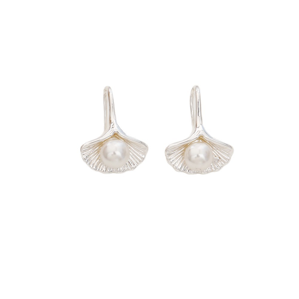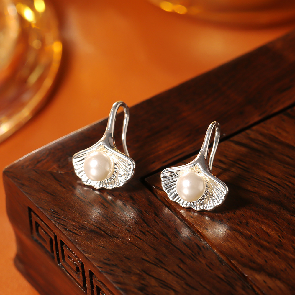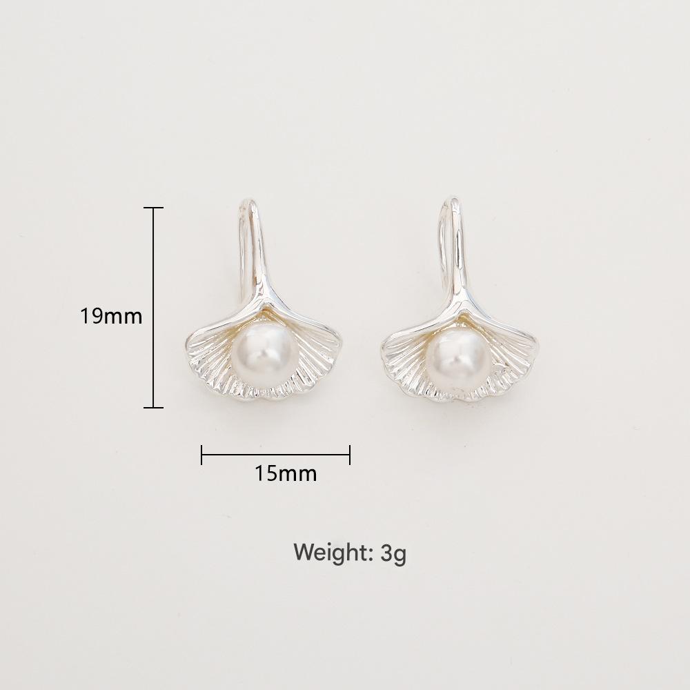 Boucles d'oreilles en perles d'eau douce, laiton, avec perle d'eau douce cultivée, Ginkgo Feuille, Placage, bijoux de mode & pour femme, argent, Vendu par paire