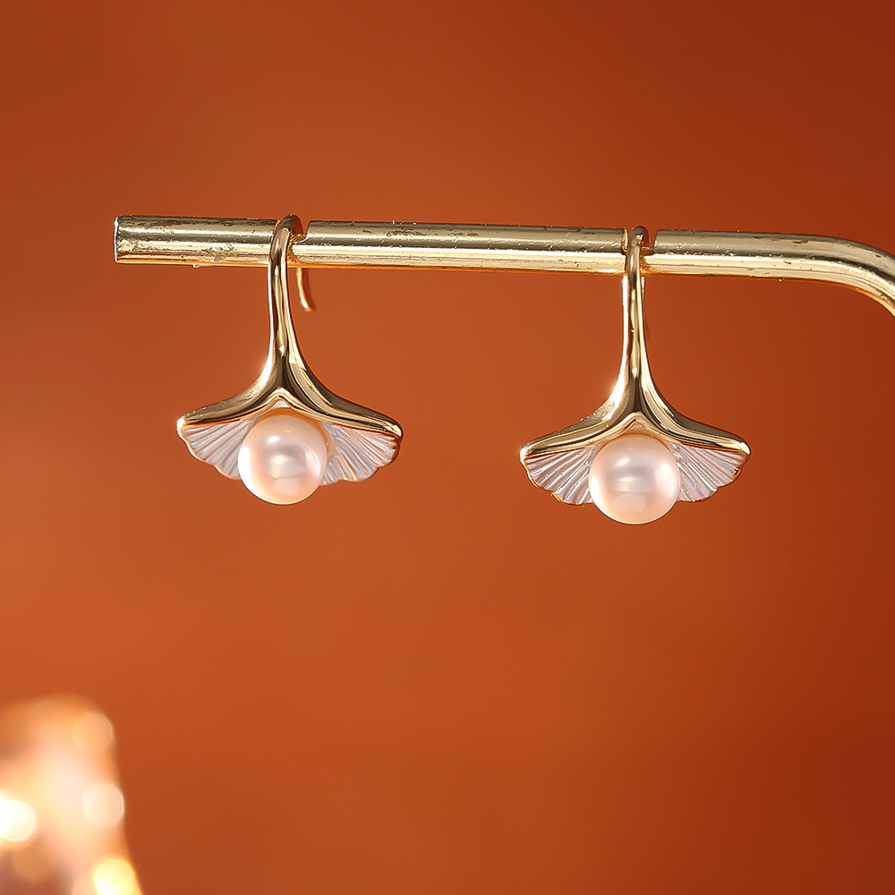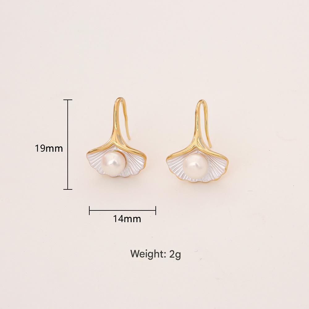 Boucles d'oreilles en perles d'eau douce, laiton, avec perle d'eau douce cultivée, Ginkgo Feuille, Plaqué d'or, bijoux de mode & pour femme & émail, Vendu par paire