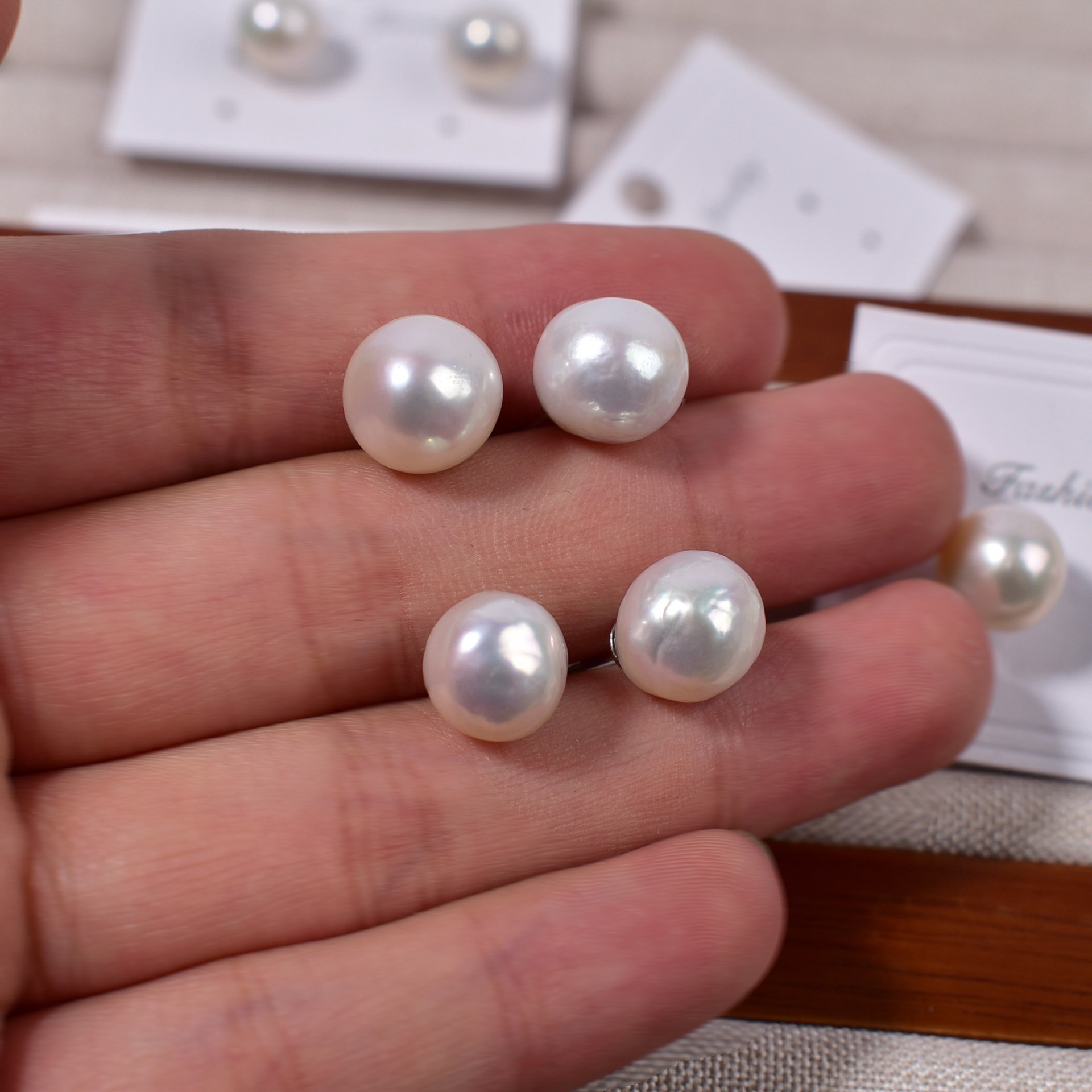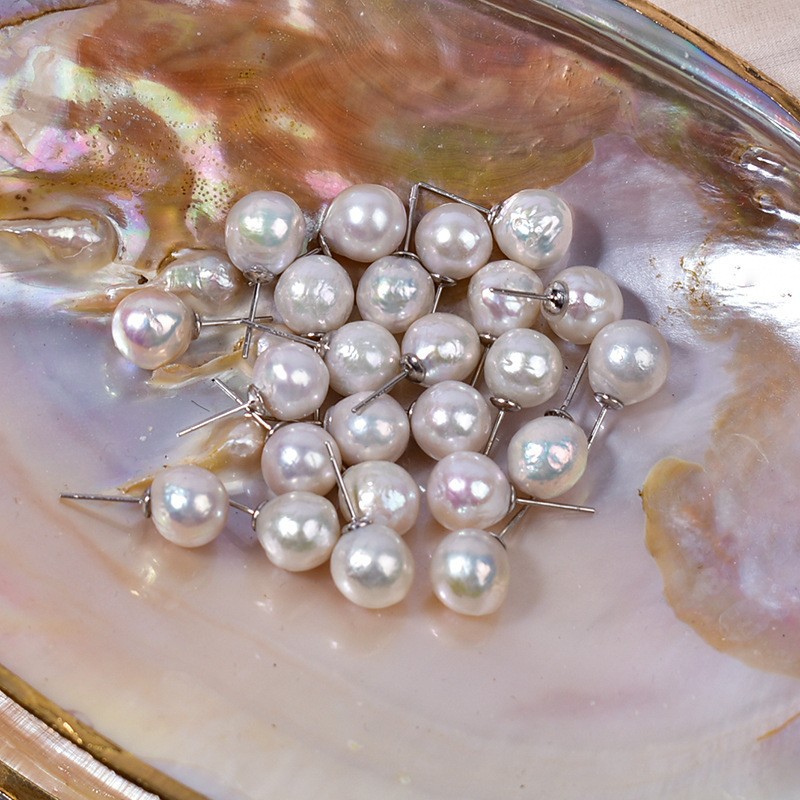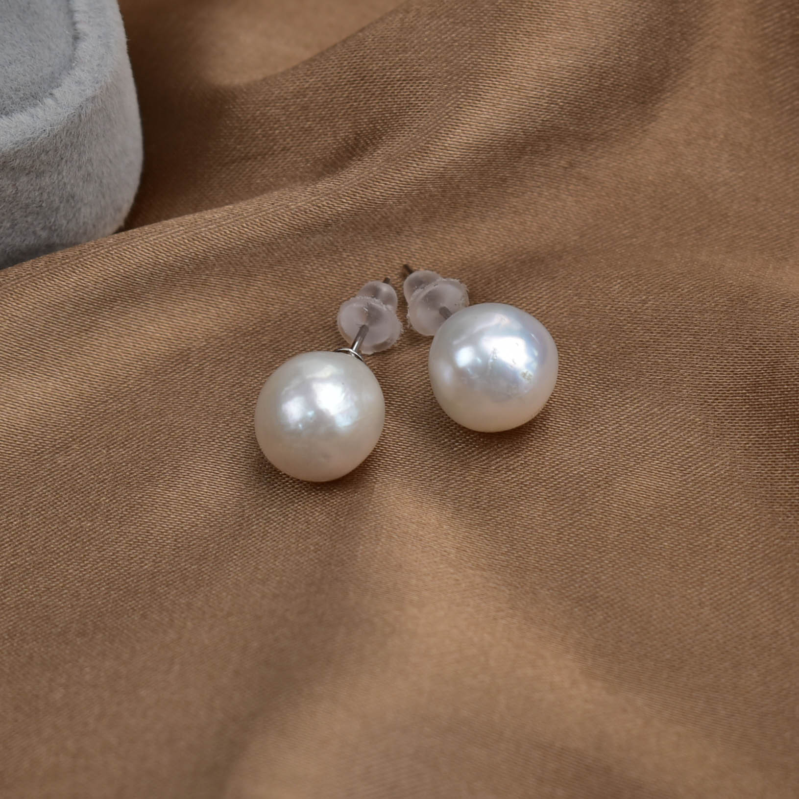 Boucles d'oreilles en perles d'eau douce, argent sterling 925, avec perle d'eau douce cultivée, Légèrement rond, bijoux de mode, plus de couleurs à choisir, 9-10mm, Vendu par paire