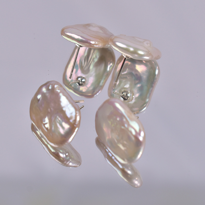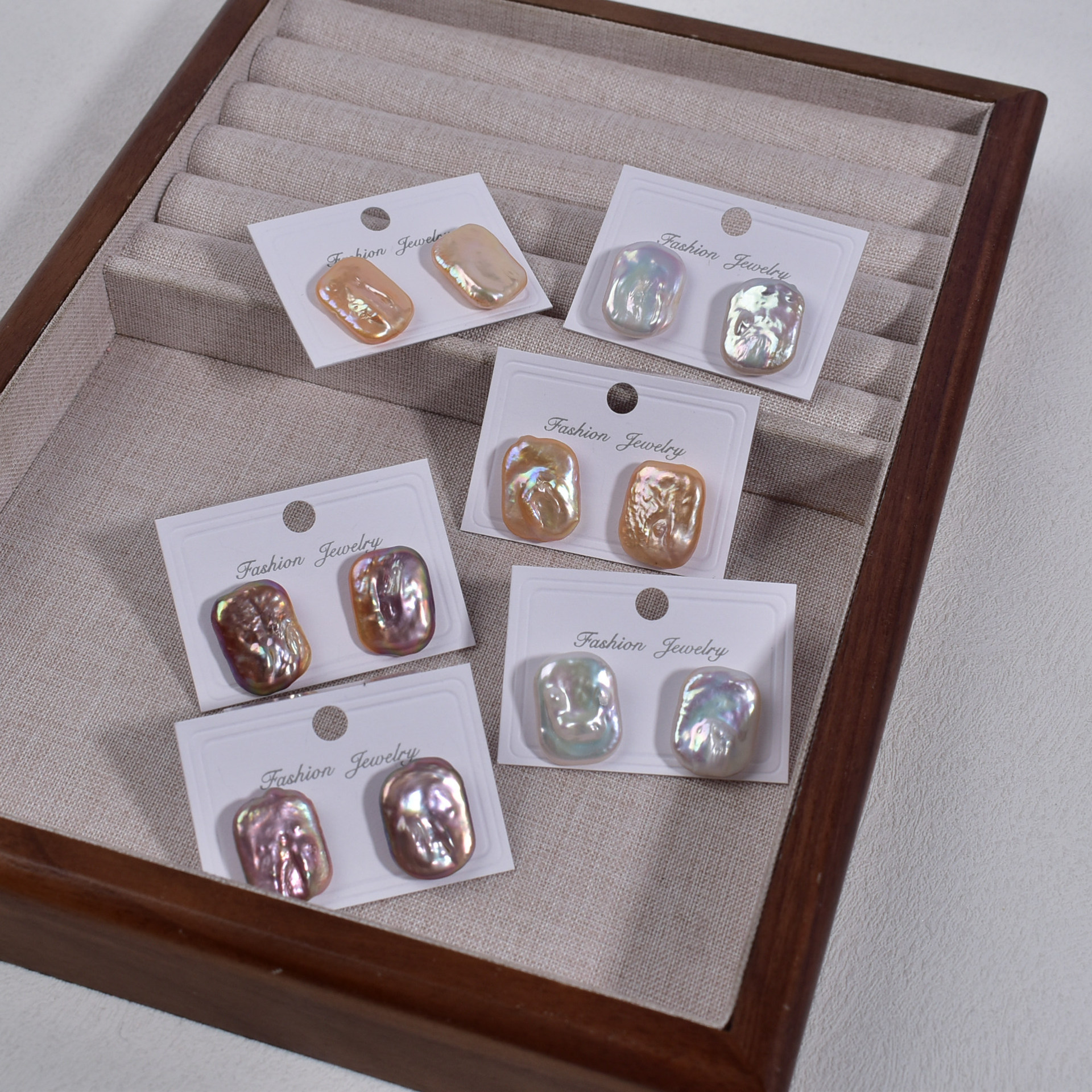 Boucles d'oreilles en perles d'eau douce, Argent sterling 925, avec perle d'eau douce cultivée, Baroque, bijoux de mode, plus de couleurs à choisir, 14-15mm, Vendu par paire