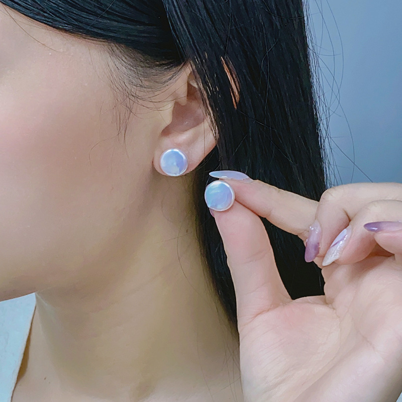 1:10mm button stud earrings white 925 silver needle2:About 12mm button earrings white 925 silver needle