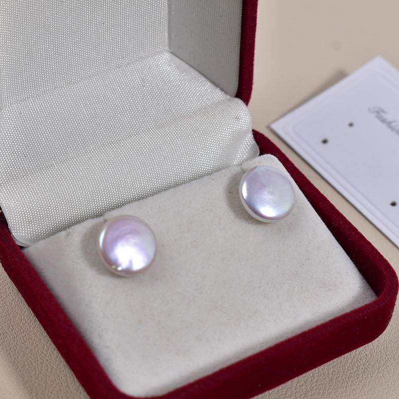 Boucles d'oreilles en perles d'eau douce, argent sterling 925, avec perle d'eau douce cultivée, pièce de monnaie, bijoux de mode, blanc, 11-12mm, Vendu par paire