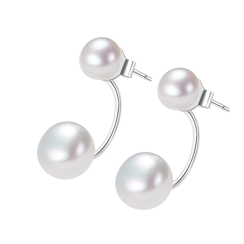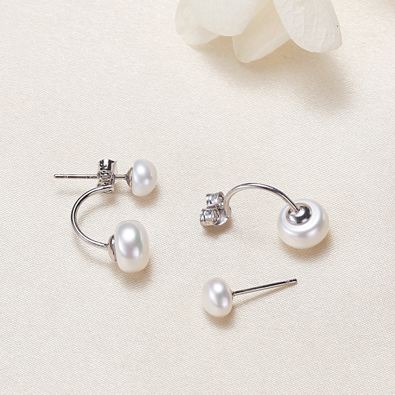 Boucles d'oreilles en perles d'eau douce, perle d'eau douce cultivée, avec laiton, Légèrement rond, Placage, bijoux de mode, plus de couleurs à choisir, protéger l'environnement, sans nickel, plomb et cadmium, 5-8mm, Vendu par paire