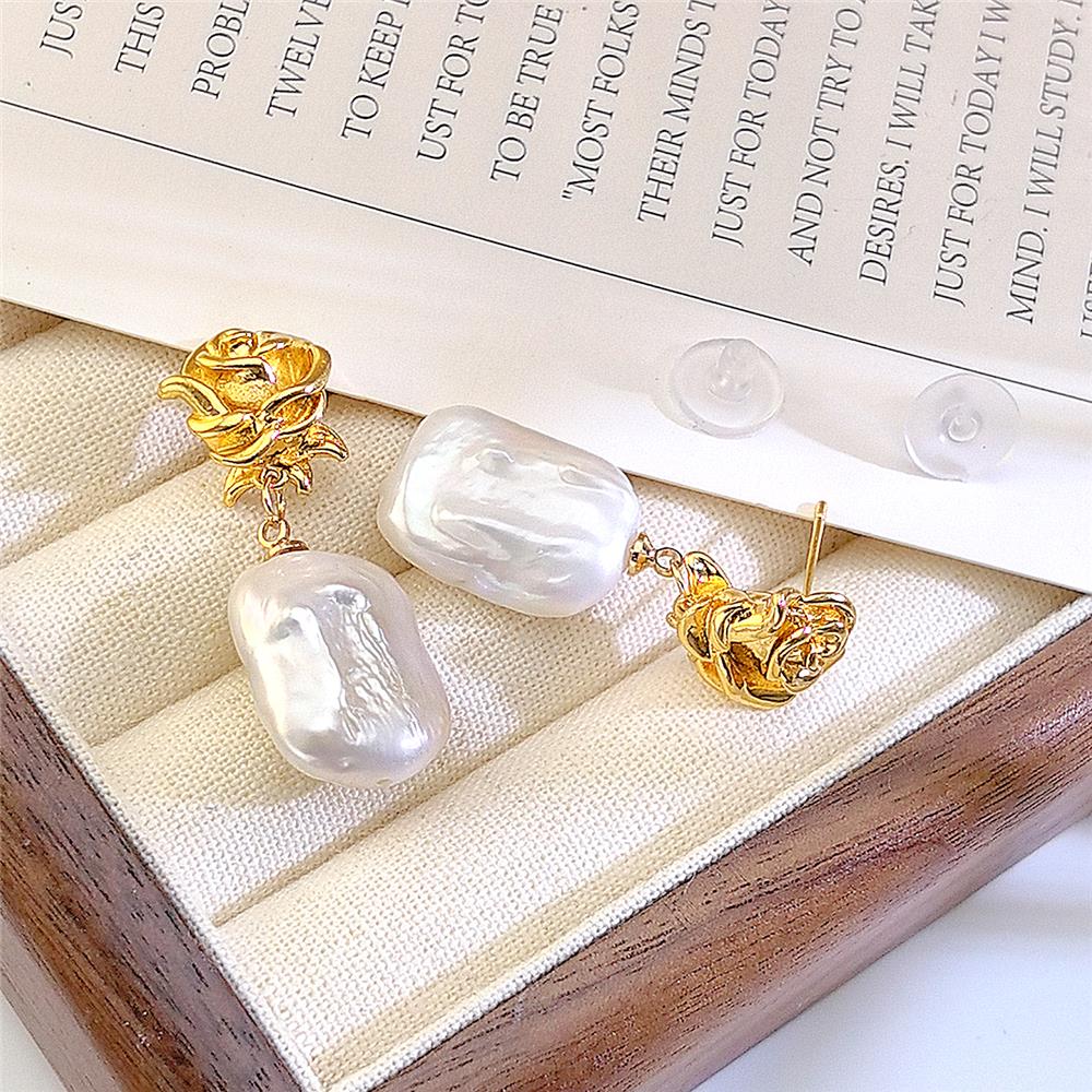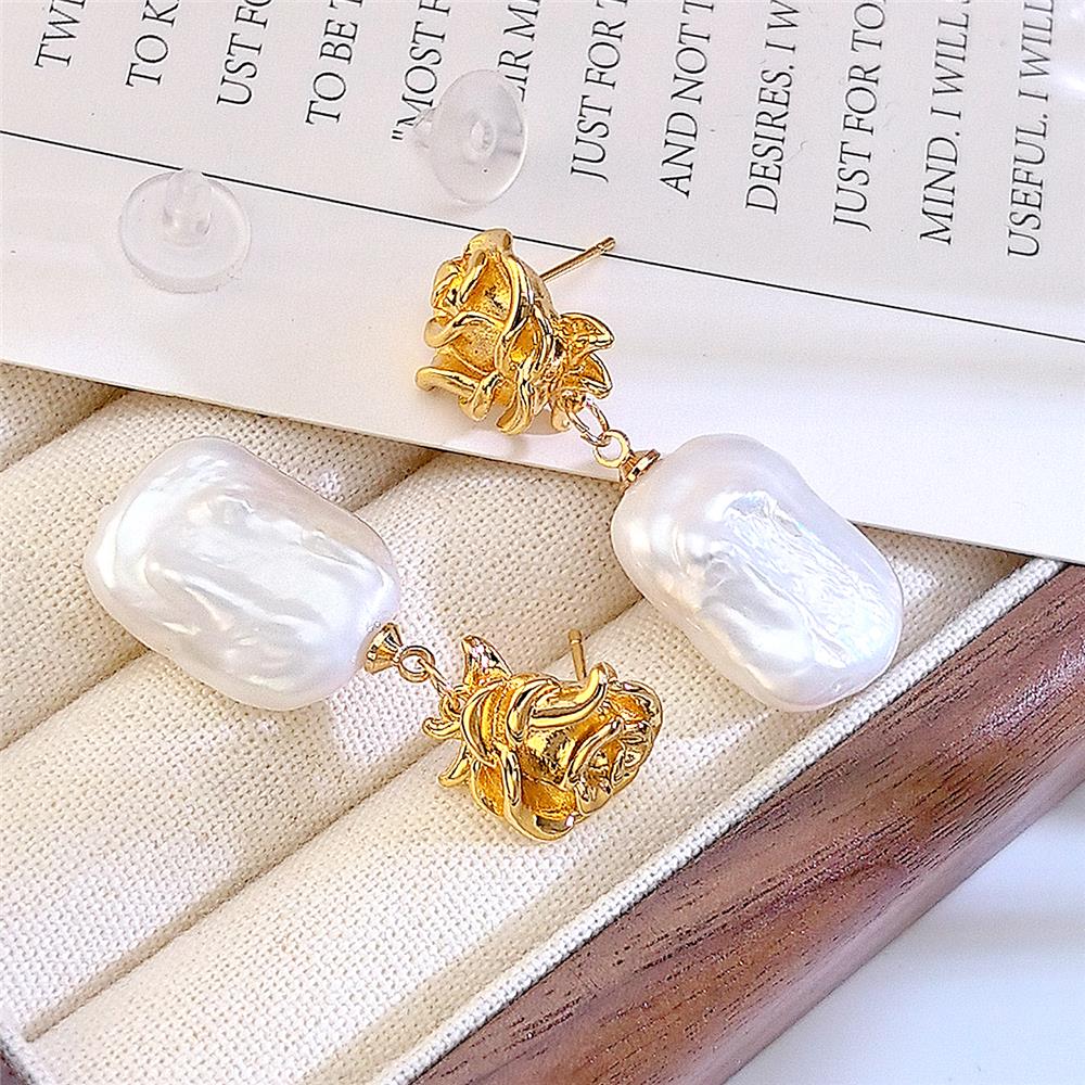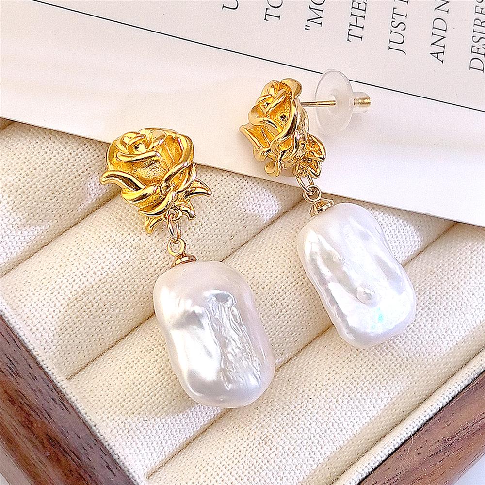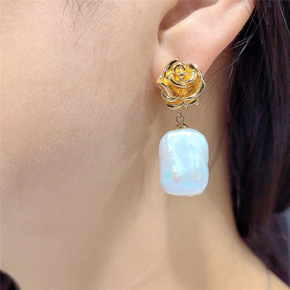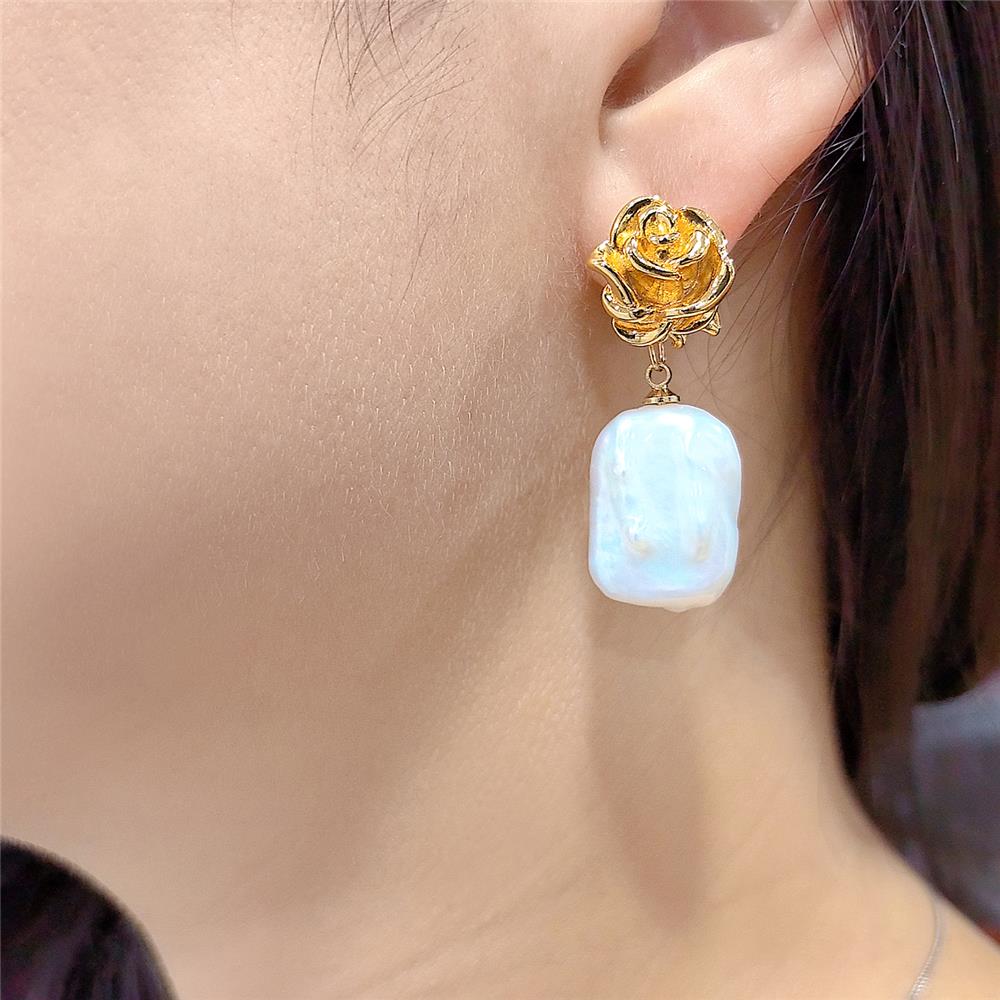 Boucles d'oreilles en perles d'eau douce, laiton, avec perle d'eau douce cultivée, Rose, Placage, bijoux de mode, couleurs mélangées, 15x35mm, Vendu par paire