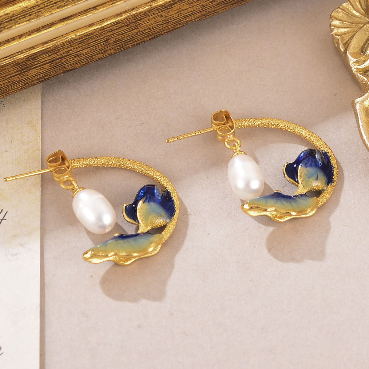 Boucles d'oreilles en perles d'eau douce, laiton, avec perle d'eau douce cultivée, Placage de couleur d'or, styles différents pour le choix & pour femme & émail, Vendu par paire