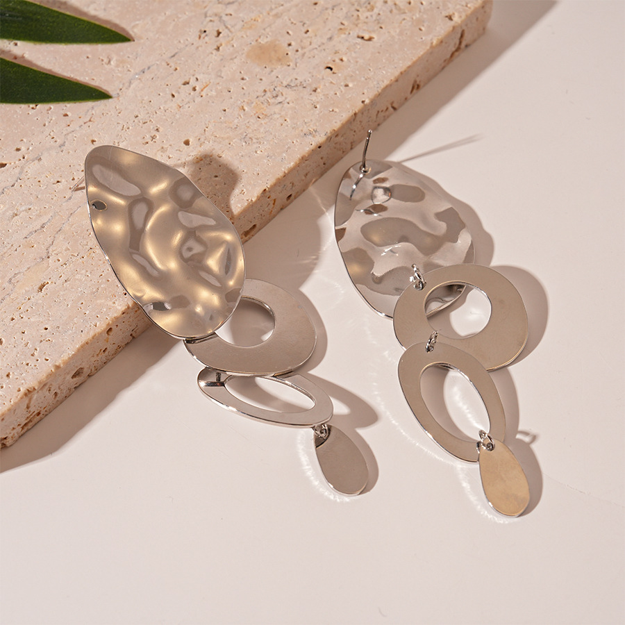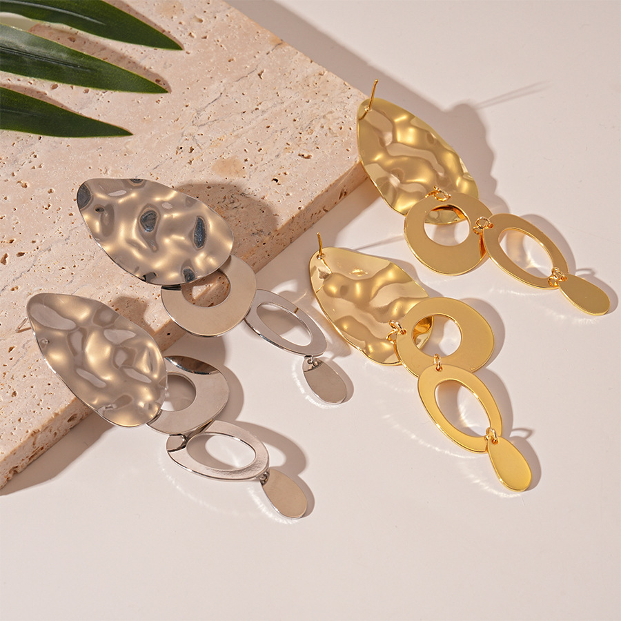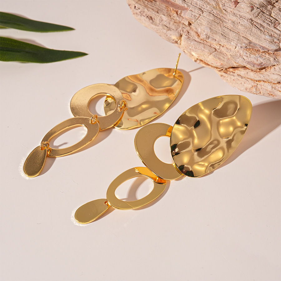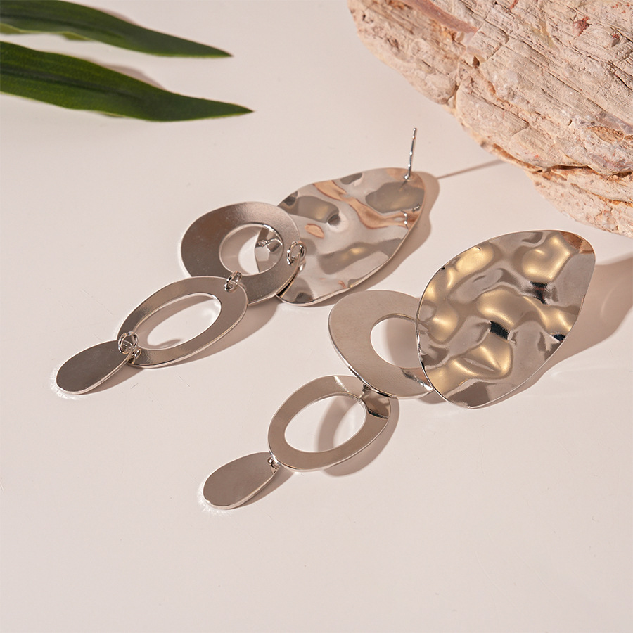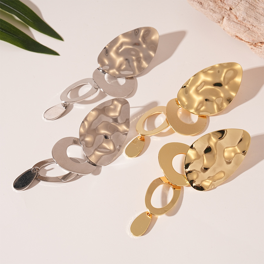 1:Silver needle-golden oval water drop earrings2:Silver needle-silver oval water drop earrings