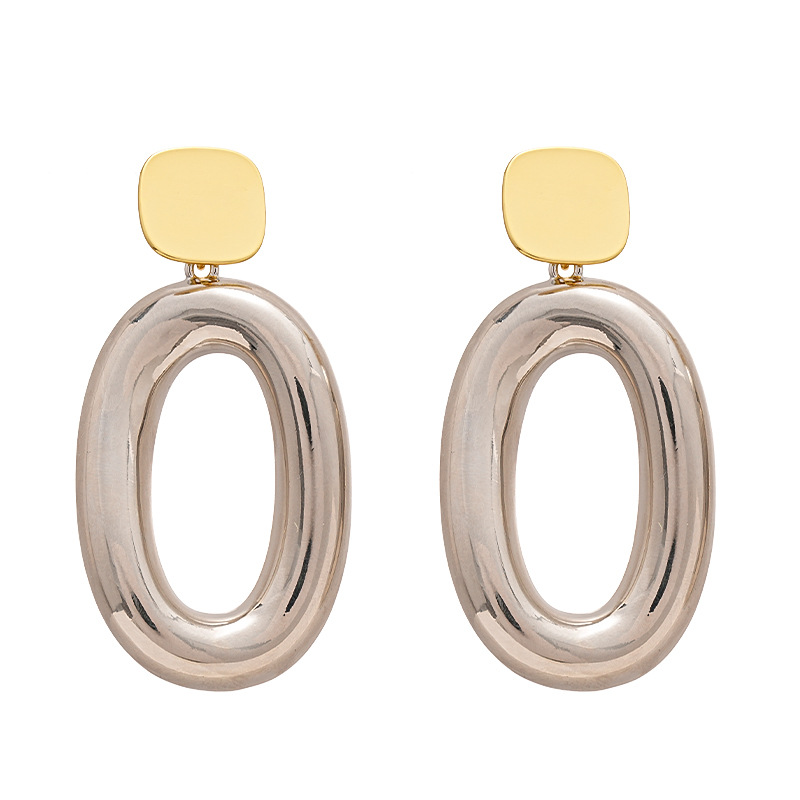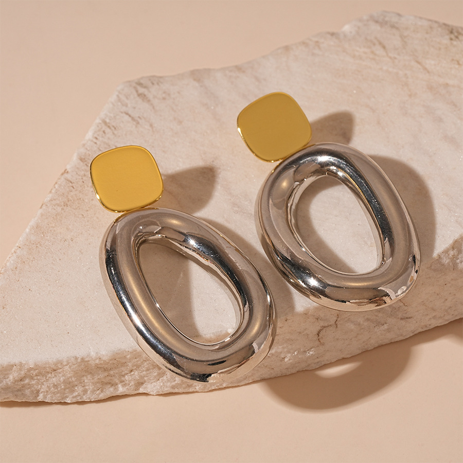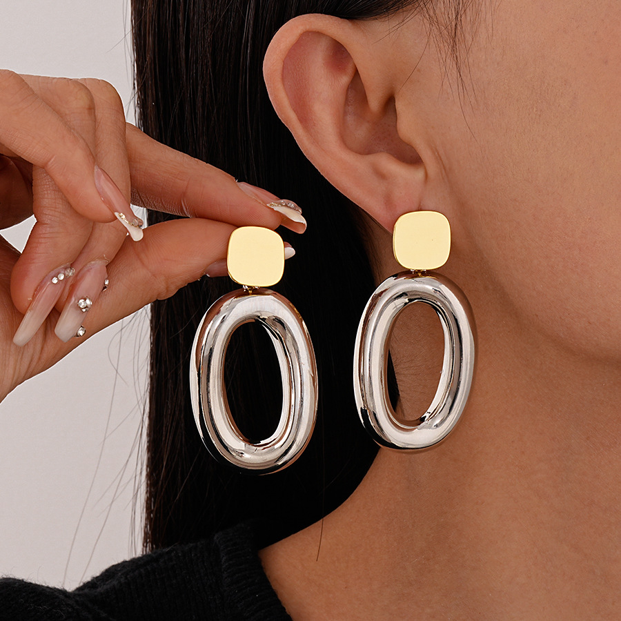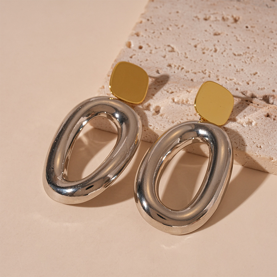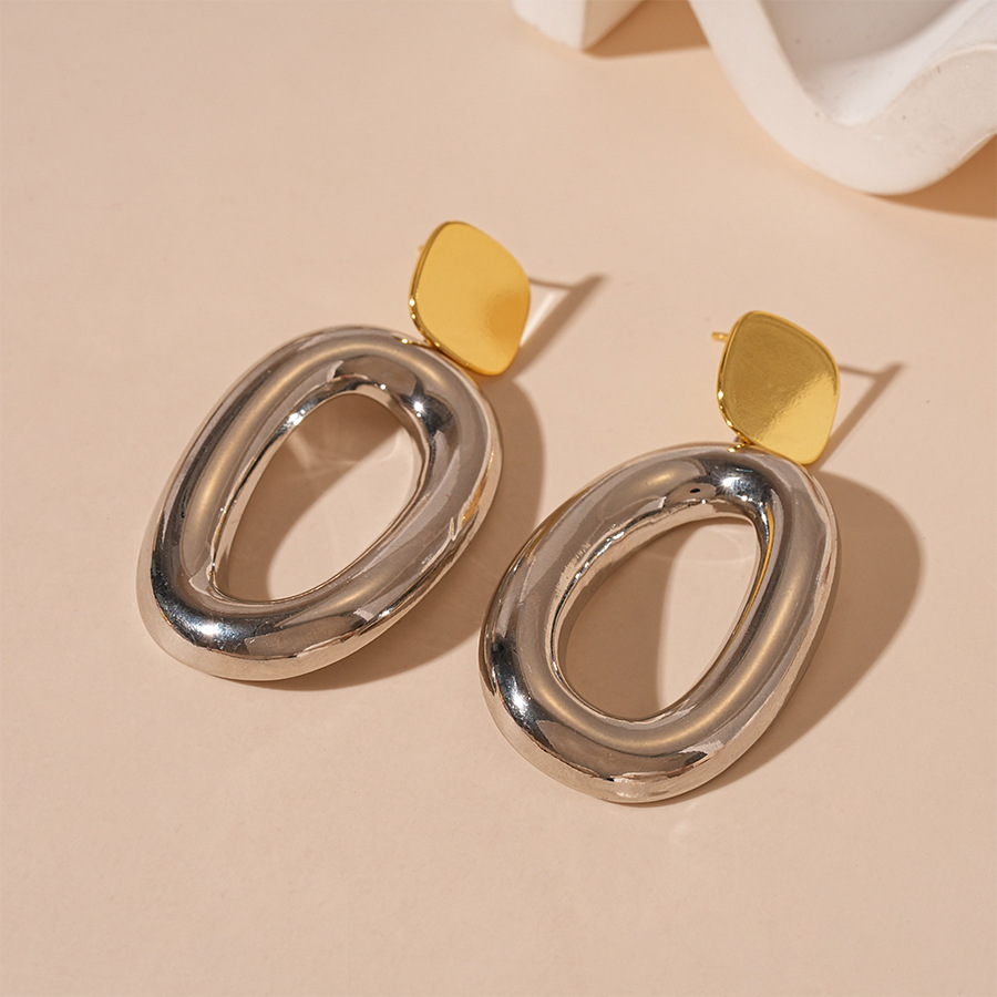Boucles d'oreilles pendantes en laiton, avec alliage de zinc, Placage, pour femme & deux tons & creux, 60x30mm, Vendu par paire