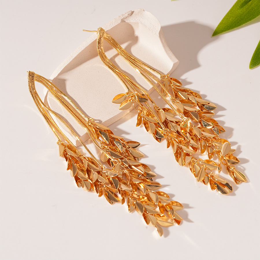 Boucles d'oreilles pendantes en laiton, blé, Placage, bijoux de mode & pour femme, plus de couleurs à choisir, Vendu par paire