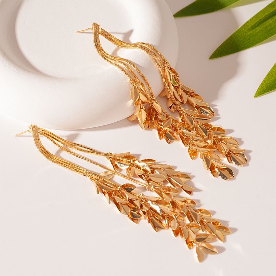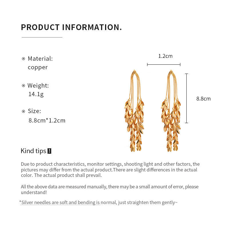 1:Silver needle-golden wheat leaf earrings2:Silver needle-silver wheat leaf earrings