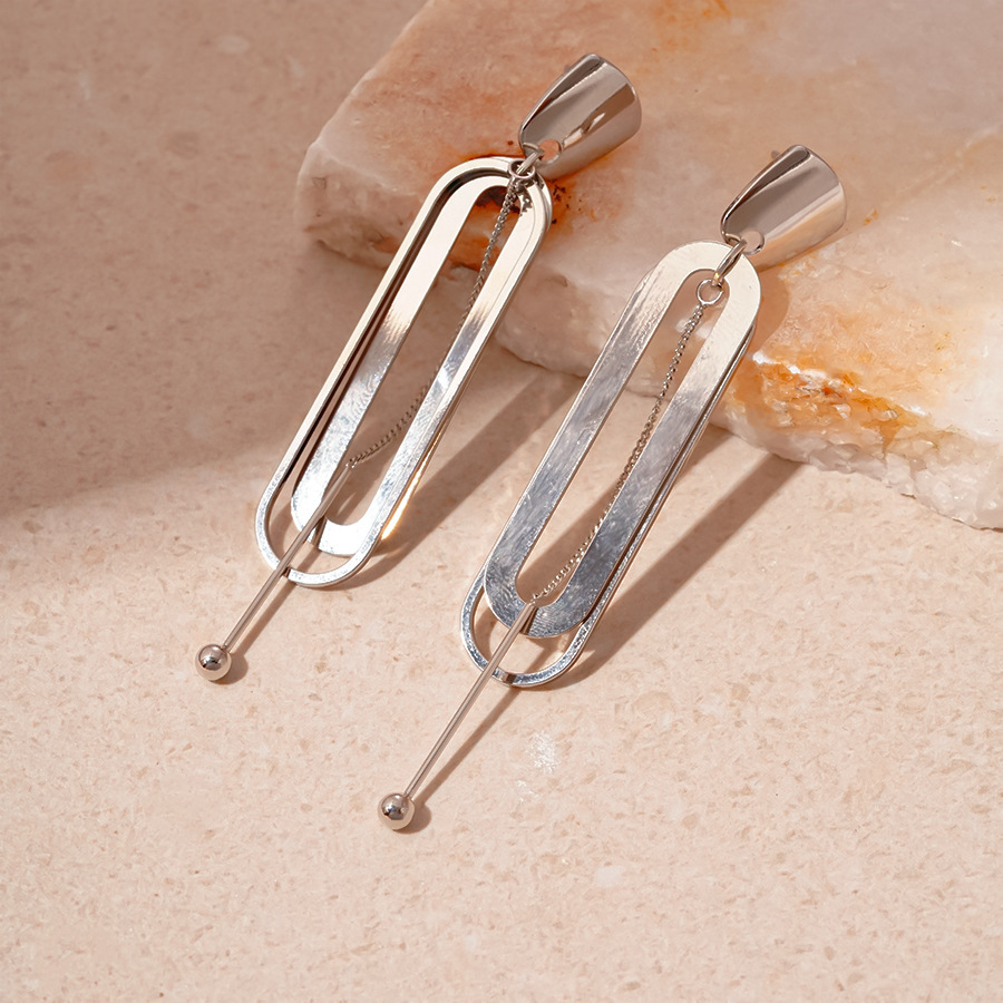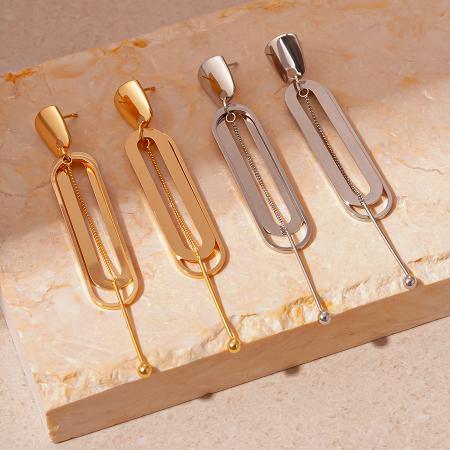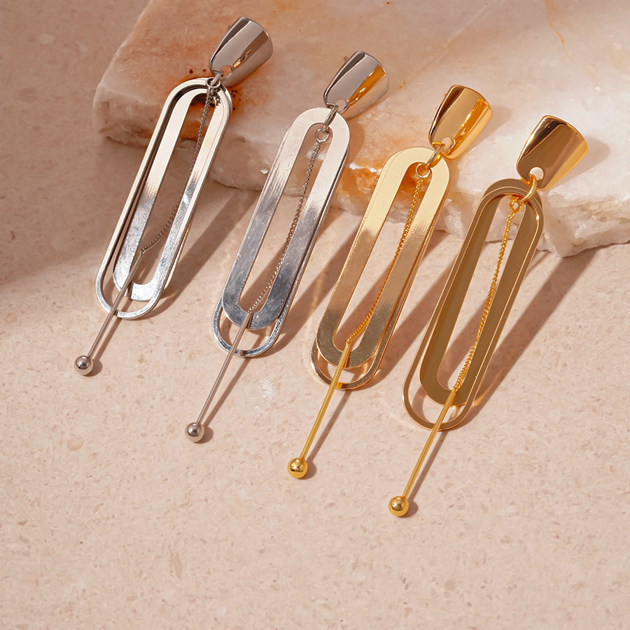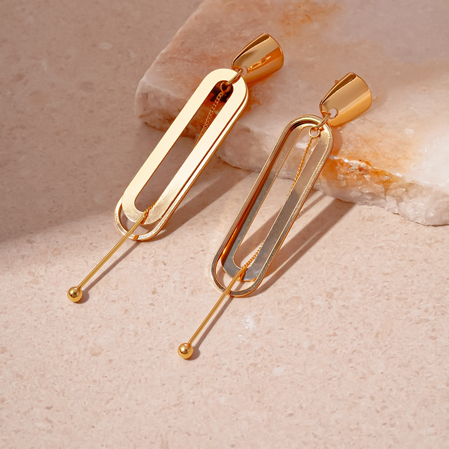 1:Silver needle-golden oval geometric earrings2:Silver needle-silver oval geometric earrings