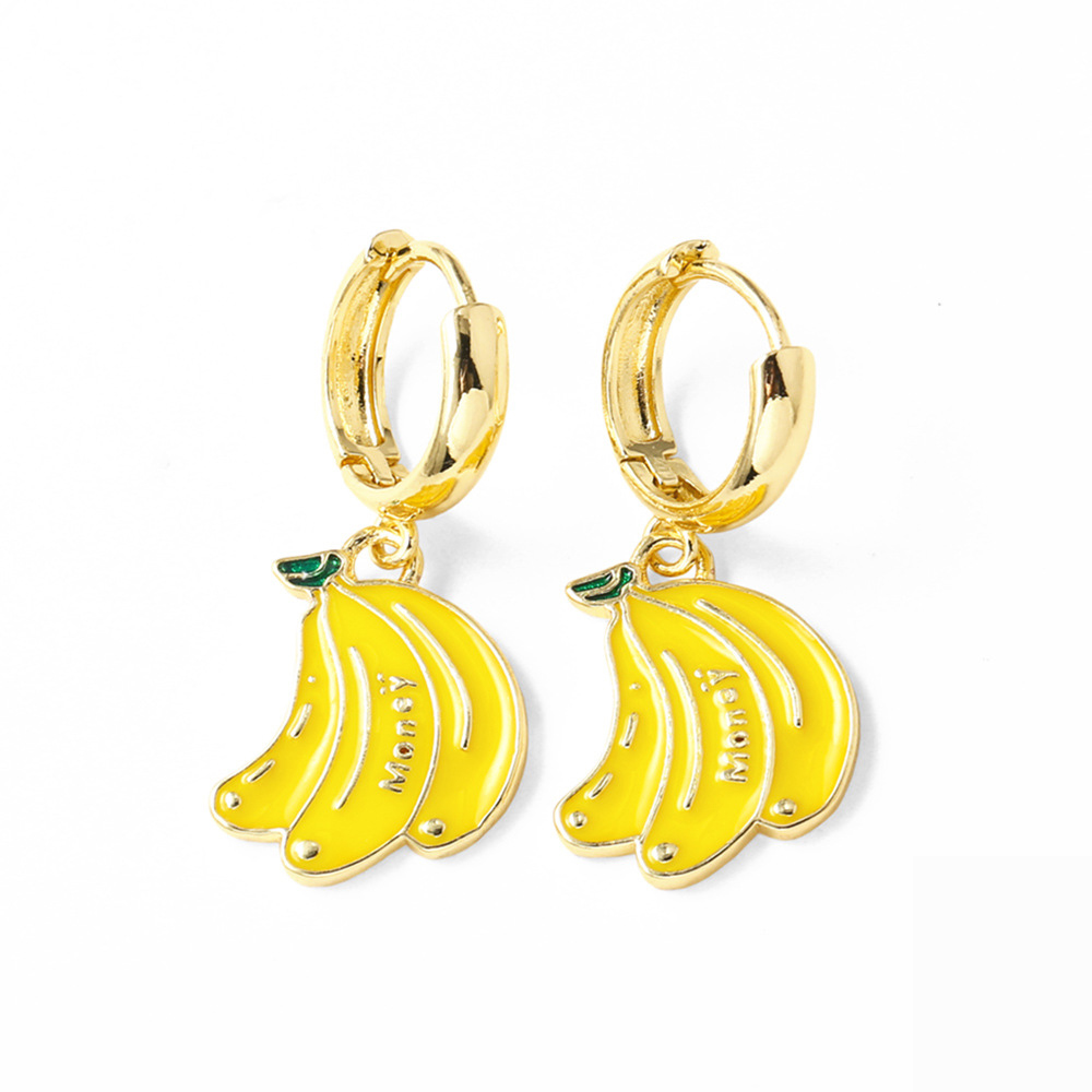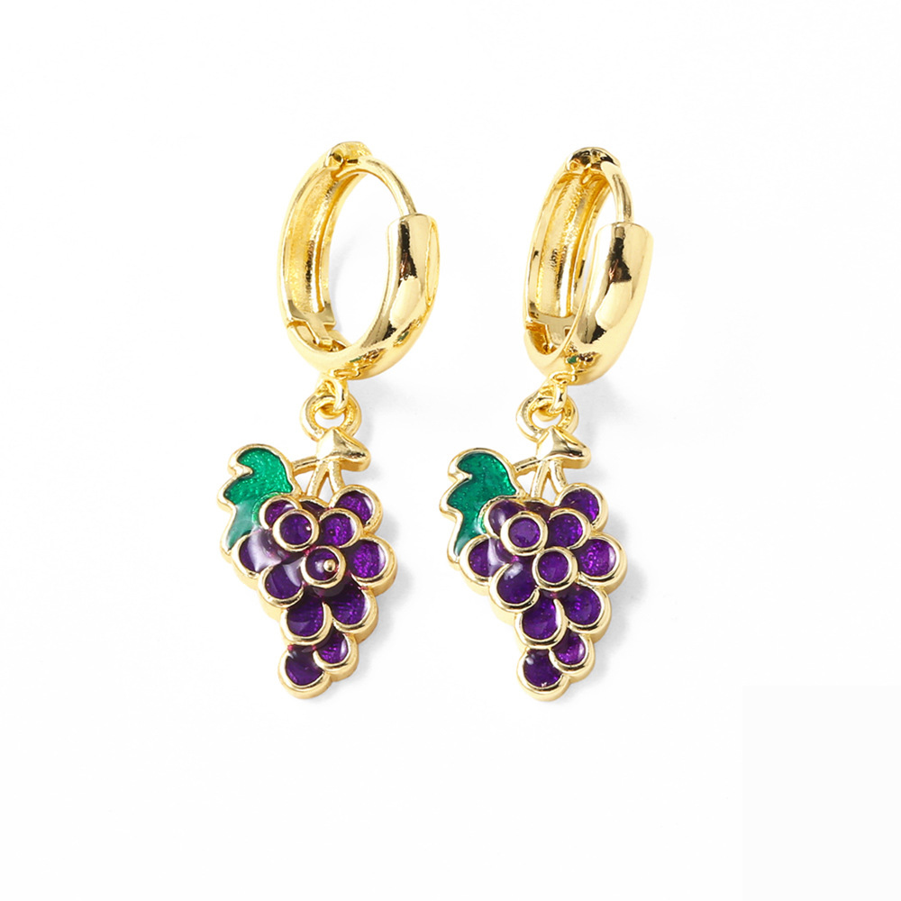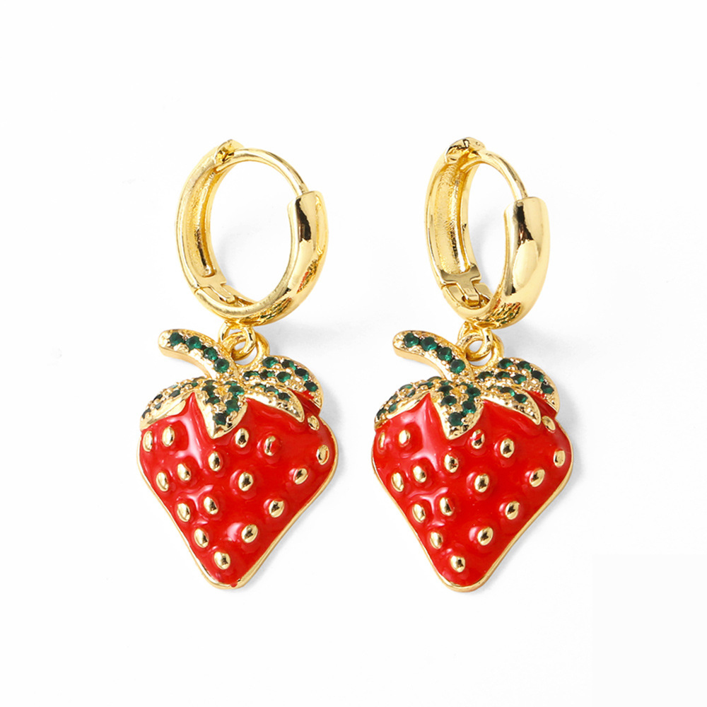 Boucles d'oreilles pendantes en laiton, fruitcéréale, Plaqué d'or, styles différents pour le choix & pavé de micro zircon & pour femme & émail, Vendu par paire