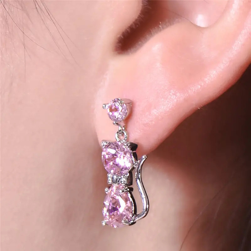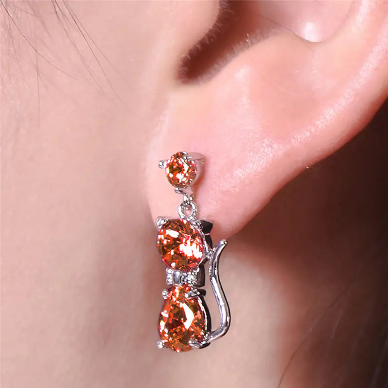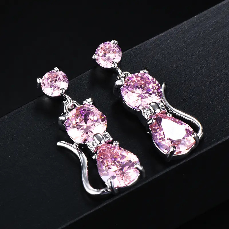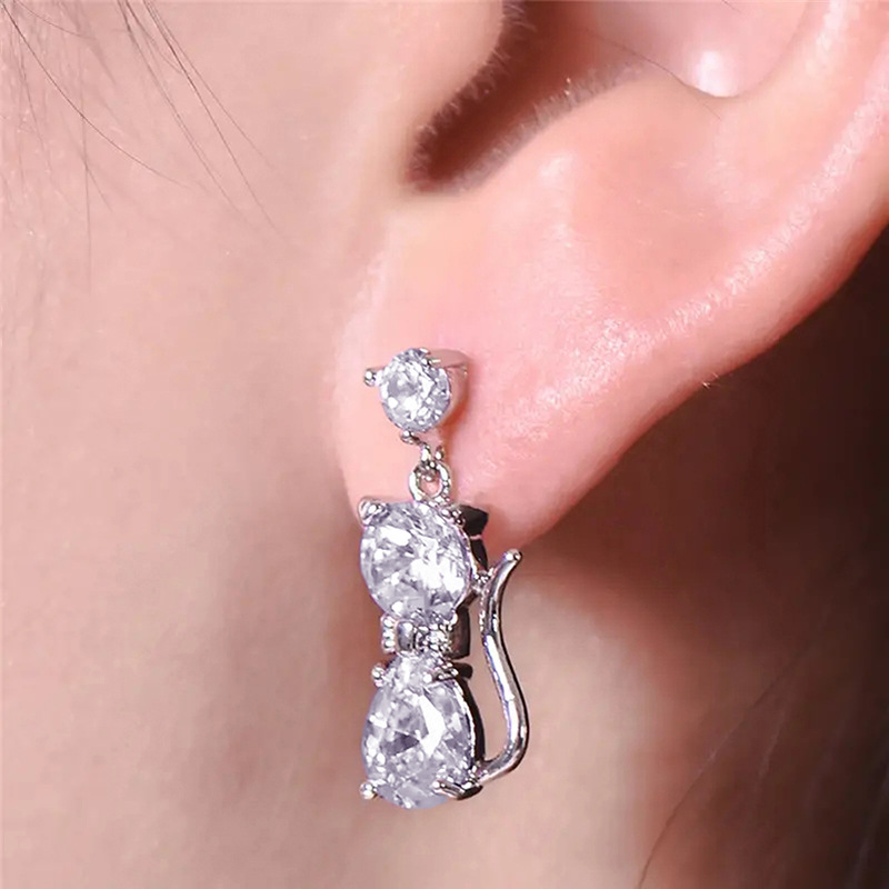 Boucles d'oreilles pendantes en laiton, avec zircon cubique, chat, Placage, bijoux de mode & pour femme, plus de couleurs à choisir, Vendu par paire