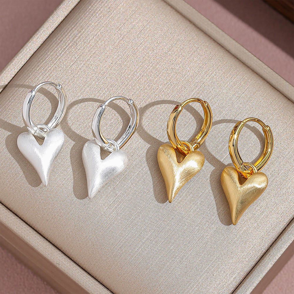 1:Gold brushed matte love earrings2:Silver brushed matte love earrings